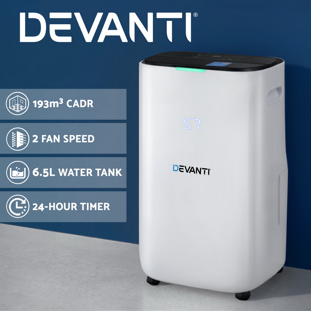 Say goodbye to dampness, musty smells, and slow-drying laundry with the Devanti 20L Dehumidifier.