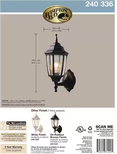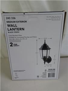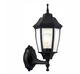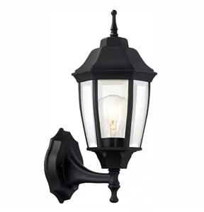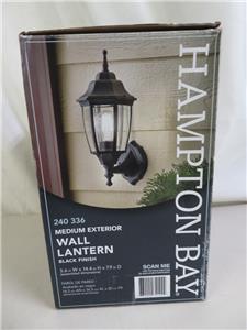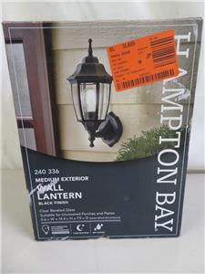 The classic look of the Hampton Bay Wall-Mount Outdoor Dusk-to-Dawn Lantern adds style to your outdoor space. It has a black finish and features a dusk-to-dawn photocell that activates the light bulb at dusk and turns it off at dawn. The clear beveled glass diffuser provides a clean, sharp appearance. Uses 1-100-Watt maximum light bulb (not included).