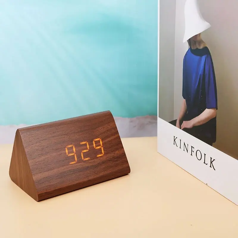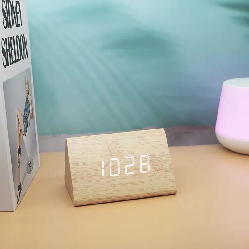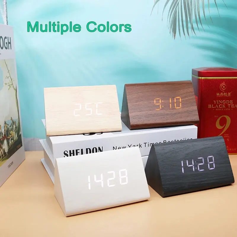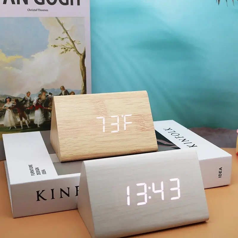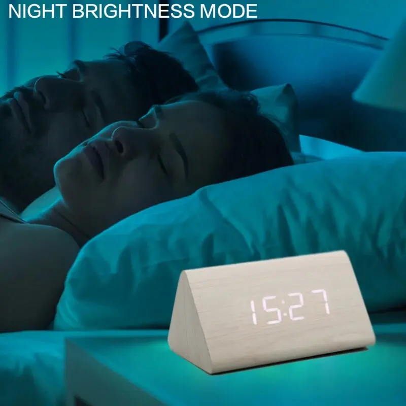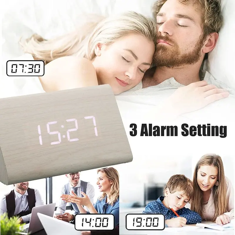 Wooden Digital Alarm Clock Time Date Temperature Display Desk Clocks for Bedroom Living Room Bedside Office