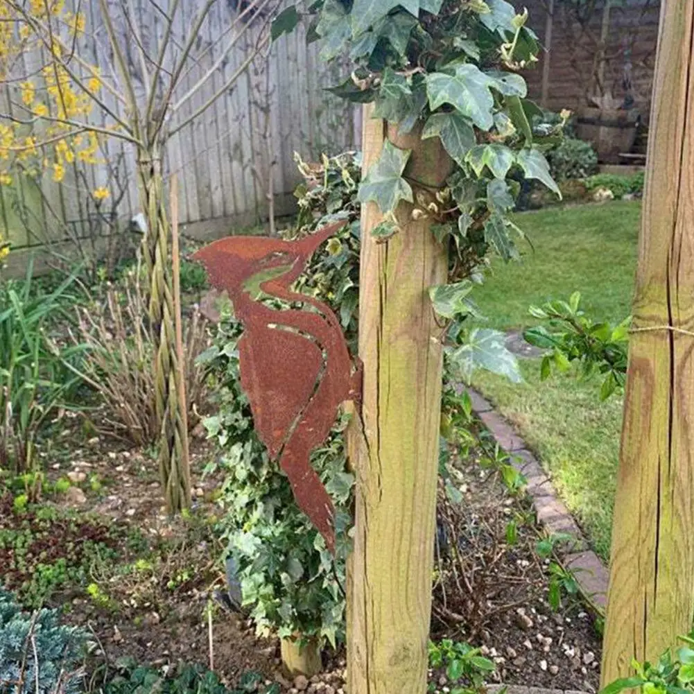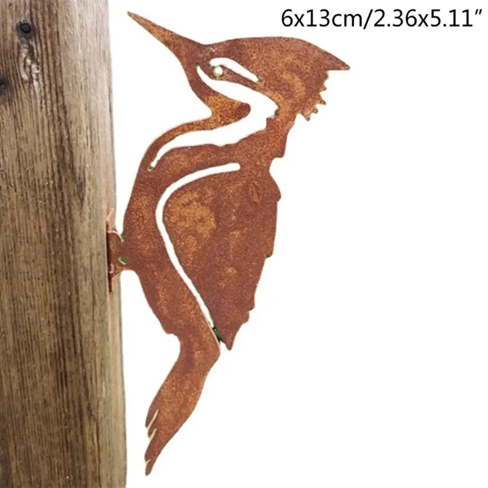 Rusty Metal Bird Silhouettes Garden Fence Decor Woodpecker Gardening Supplies Country Art Robin Design Stake Decorations
