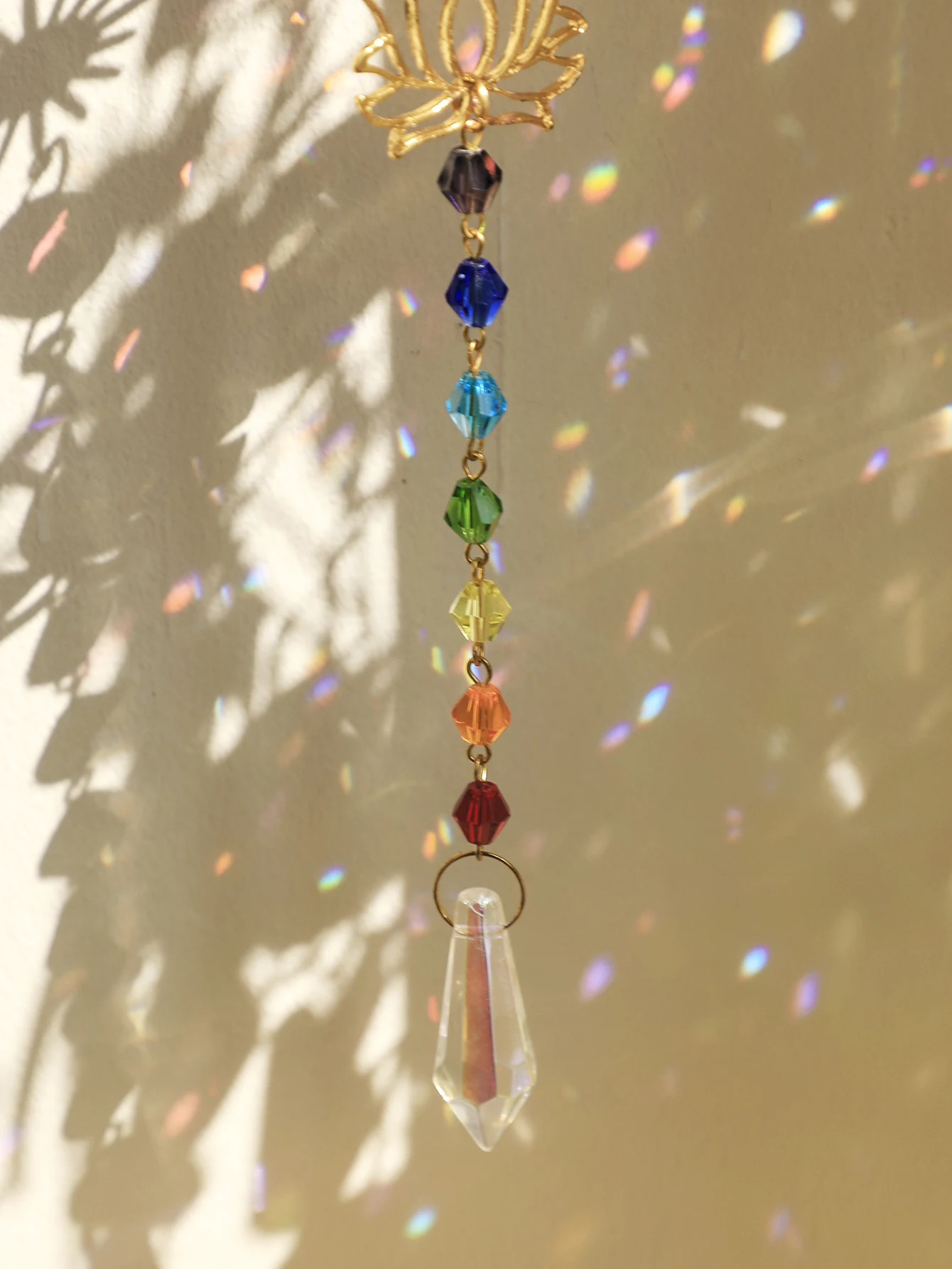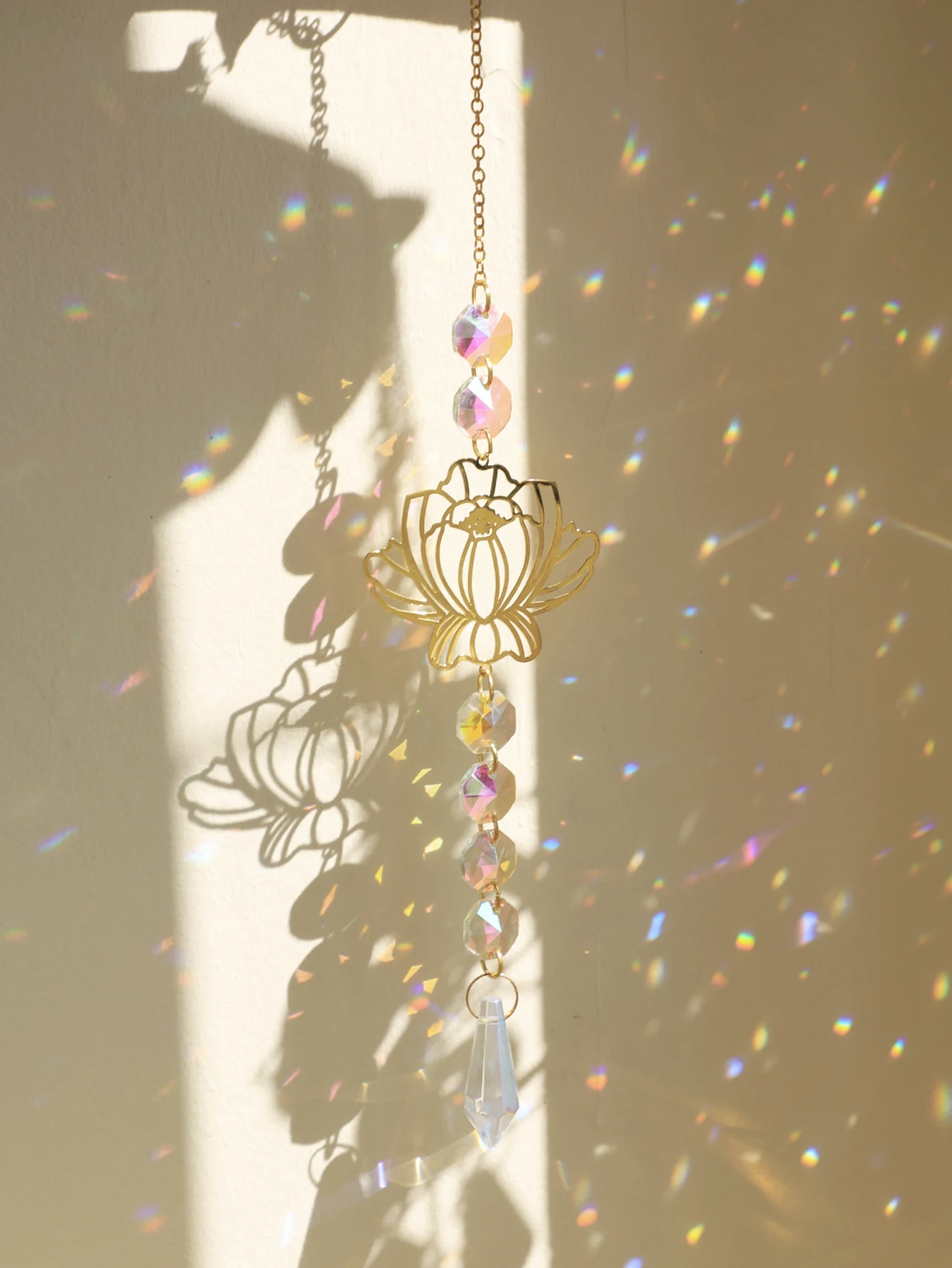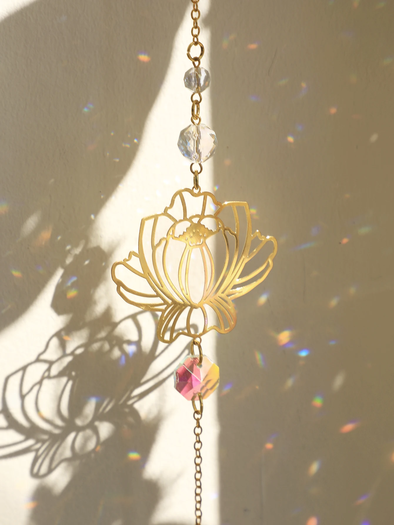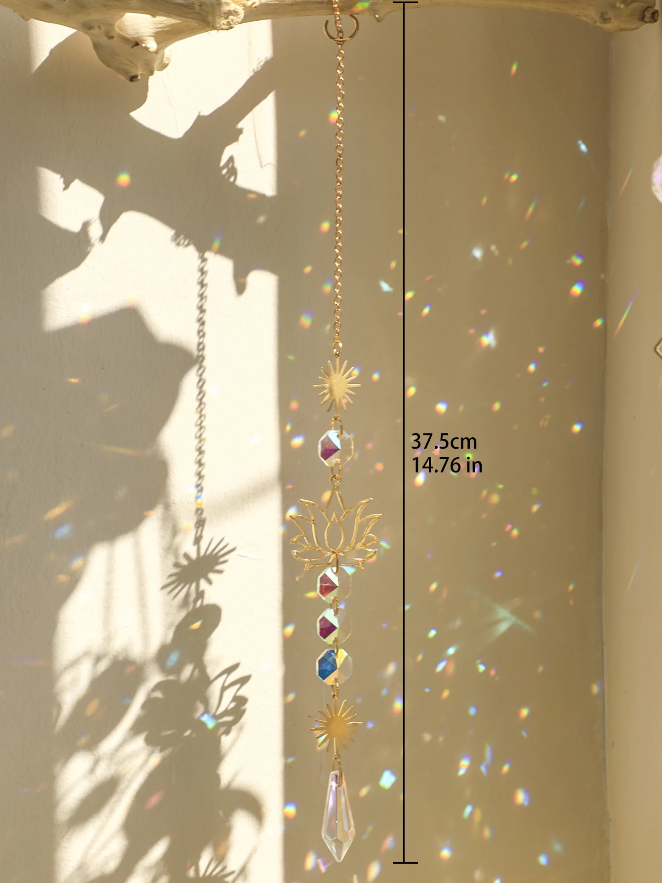 Sun Catcher Crystal Lotus Hanging Crystals Stained Glass Suncatcher Outdoor Decor Rainbow Maker Prism Chakras Garden Decoration