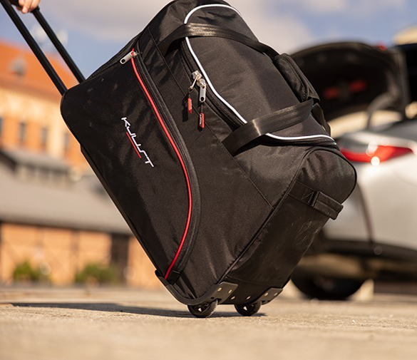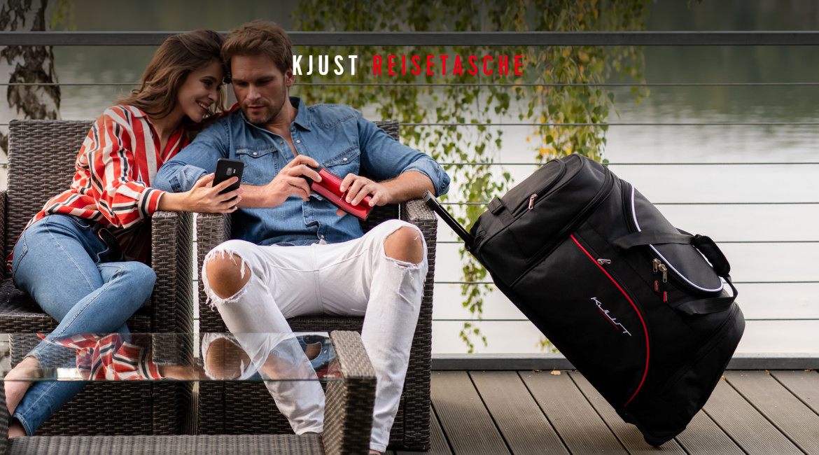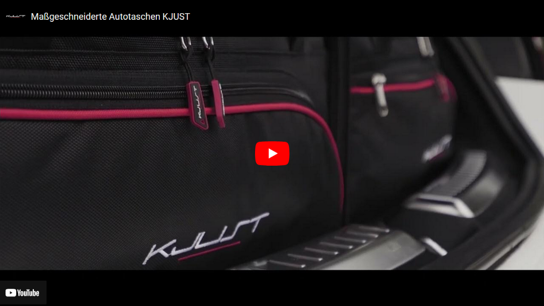Dank ihrer schrägen Seiten, die an die Neigung der Rücksitze angepasst sind, füllen die Taschen den Kofferraum optimal aus. Dies ist eine einzigartige Eigenschaft der KJUST Taschen.