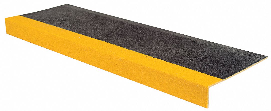 Stair Tread Cover, Lip Height 1 1/4 in, Nose Style Square, Installation Hardware Included Yes, Surface Design Full Coverage Grit, ADA Compliant Yes, Color Black/Yellow, Edge Style Square, For Surface Type Existing Concrete, Open Mesh, Steel Surfaces, Wood Surfaces, Grit Size Coarse, Indoor/Outdoor Indoor, Outdoor, Installation Method Adhesive and Fasteners, Material Fiberglass Reinforced Plastic, Number of Grit Strips 1, Overall Depth 10 in, Overall Width 36 in