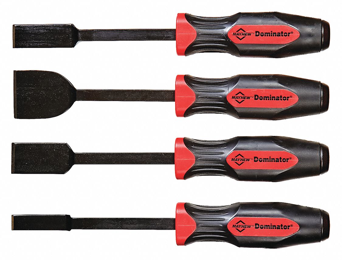 Scraper Set, Blade Edge Type Straight, Blade Flexibility Stiff, Blade Material Chrome Vanadium Steel, Blade Shape Straight, Blade Width 1/2 in, 3/4 in, 1 in, 1 1/2 in, Handle Length 4 3/4 in, Handle Material Polypropylene, Handle Style Ergonomic, Includes Scrapers: 1/2 in, 3/4 in, 1 in and 1-1/2 in, Number of Pieces 4, Overall Length 13 3/4 in