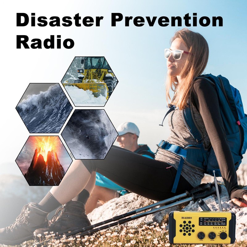 Different Power Supply Modes: With hand crank, solar, and USB charging options, this weather radio delivers dependable energy sources, ensuring usability in disasters or power outages while enhancing user experience for outdoor activities