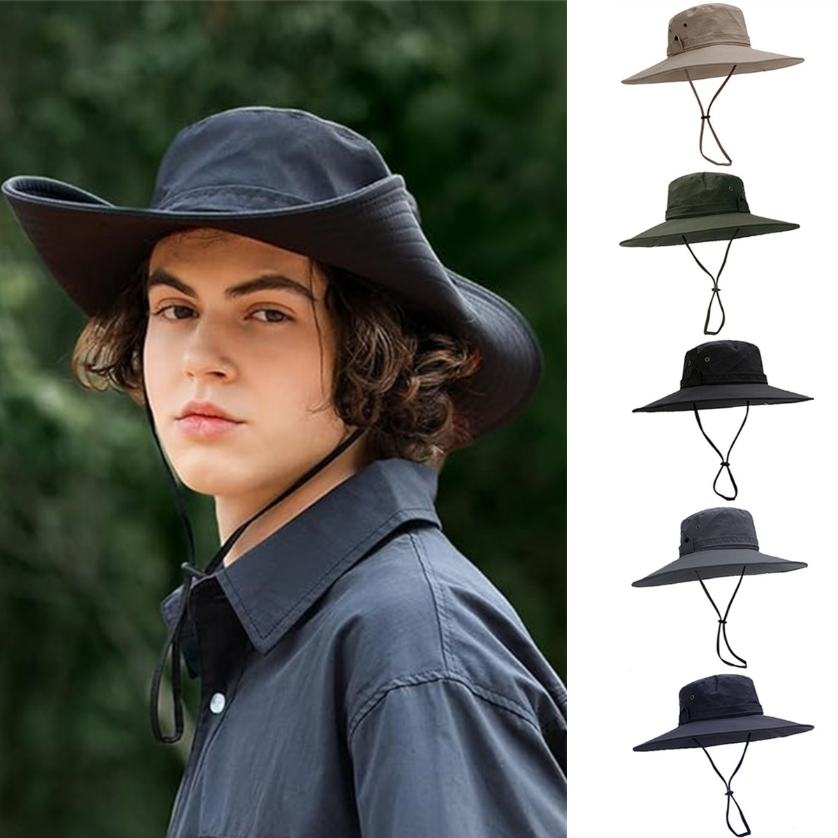 Size: Suitable for most people, head circumference 55-60 cm, super wide brim about 12cm. An adjustable jaw strap with a buckle can be set to any size for comfortable wear, keeping the fisherman's hat in place even in wind and rain. The 12cm brim effectively protects against the sun's rays from all directions of the face, ears and neck, providing complete shade to protect you from the sun. Skin and provides excellent protection.