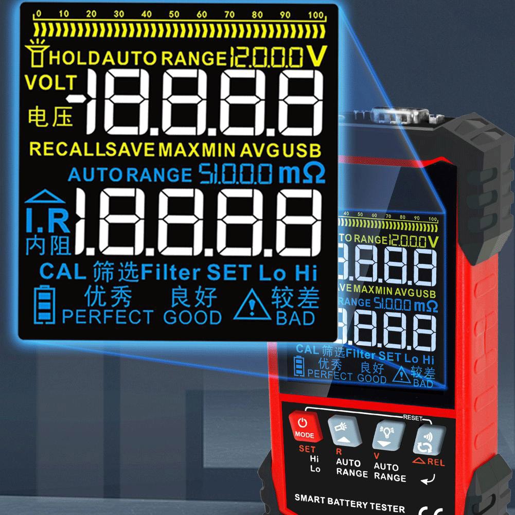 6. Automatische Widerstandsbereichsschaltfunktion, kann sich automatisch an den Widerstandsbereich verschiedener Batterien anpassen, bequem für Benutzer zu testen.