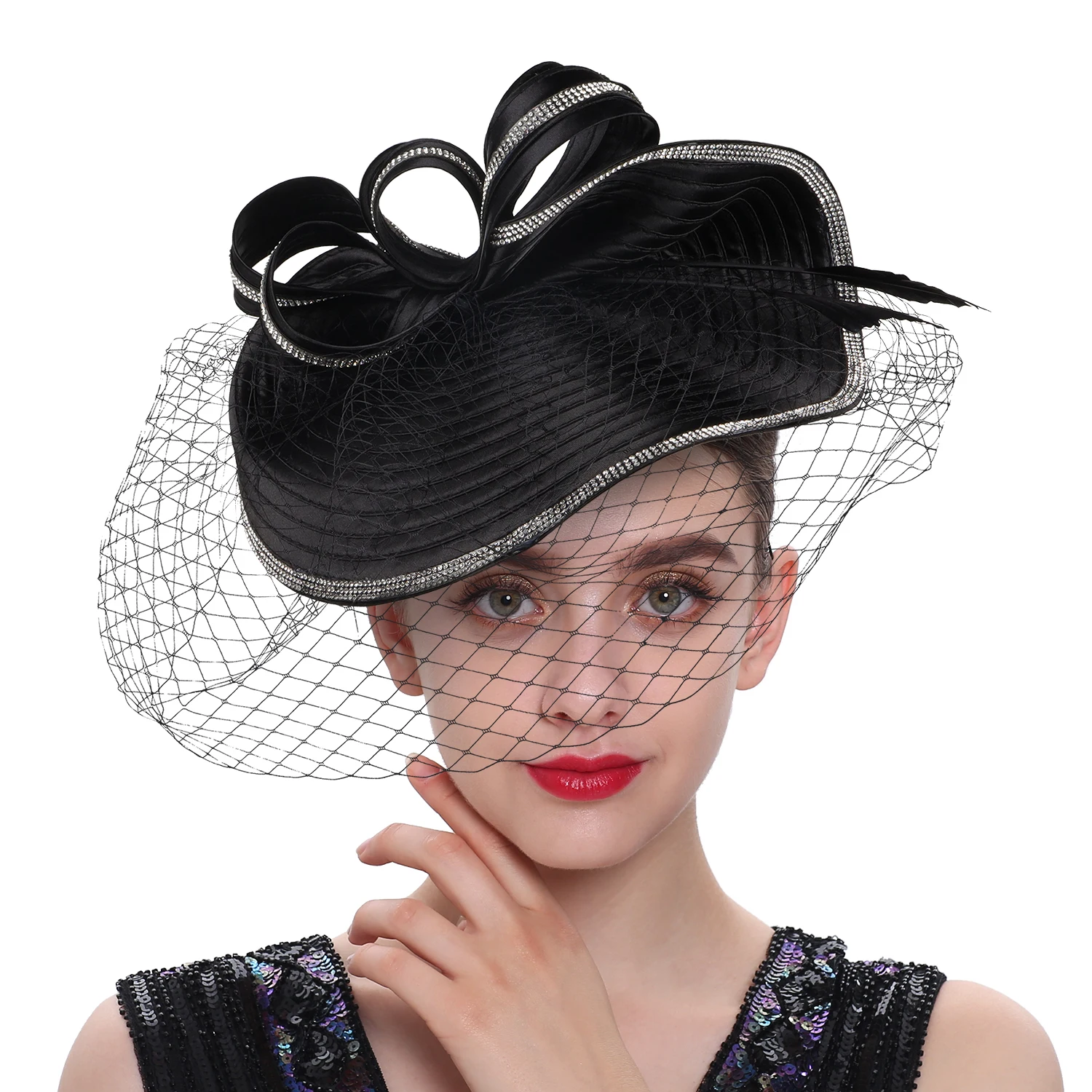 Elegant Derby Hat Veil With Rhinestones Bridal Fashion Church Wear For Women NEW