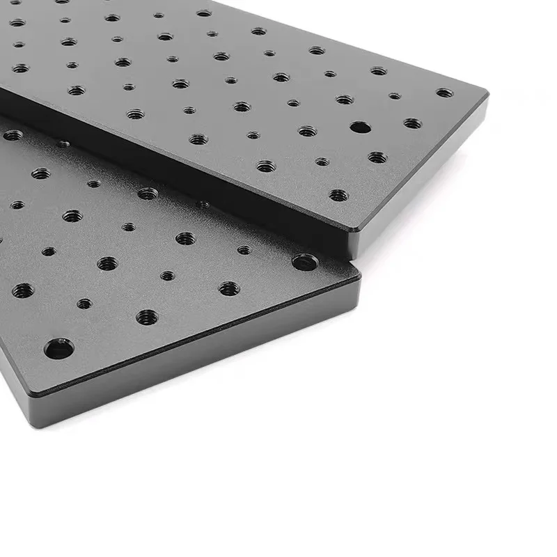 Description: The aluminum breadboard is a non-magnetic material, which can be used as the bottom plate of the optical device, a cost-effective carrier platform for experiments and installation of small optical systems. The surface of the breadboard is blackened by anodic oxidation, which can reduce the surface light reflection; it is arranged in a 25mm*25mm array, and the threaded holes with a distance of 12.5mm from the edge penetrate the bottom, and components can be installed on either side.