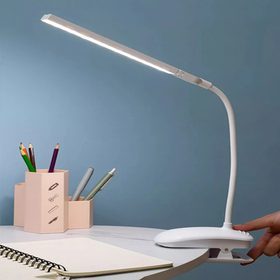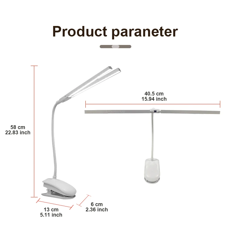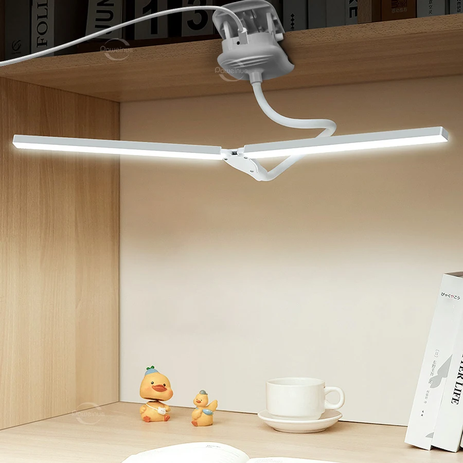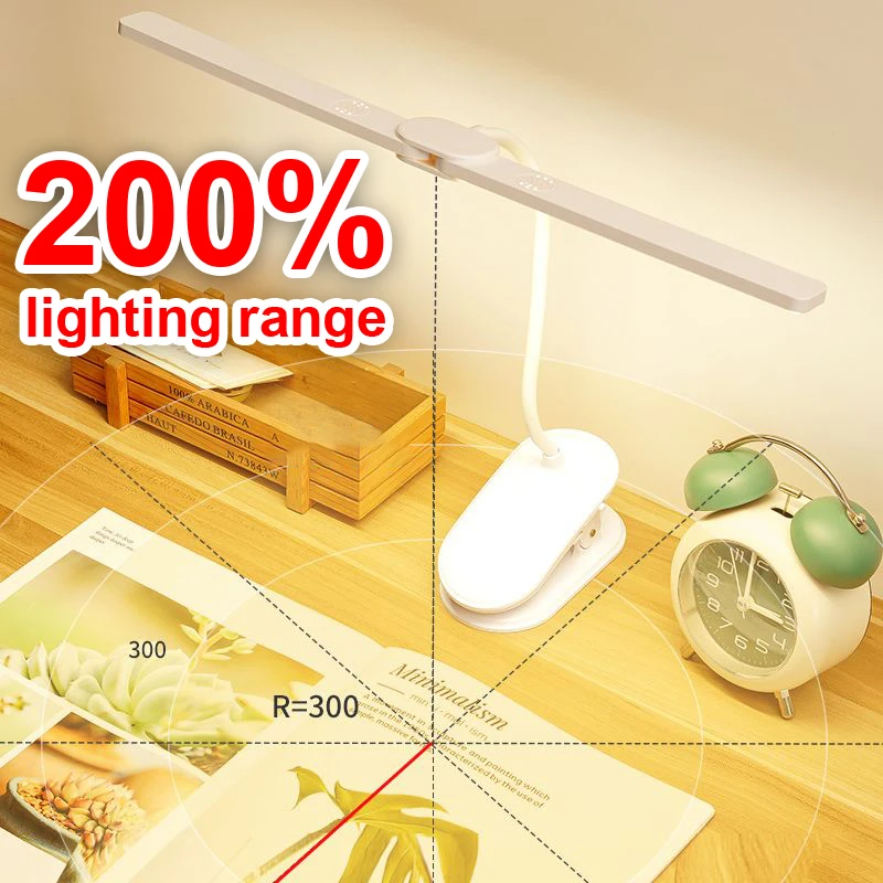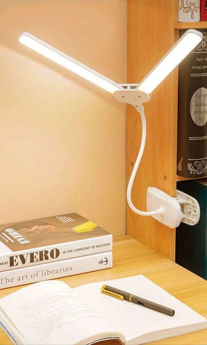 LED Table Lamp with Clip USB Chargeable Dimmable Desk Lamp 3 Colors Foldable Eye Protection 2 Heads Desktop Reading Night Lights