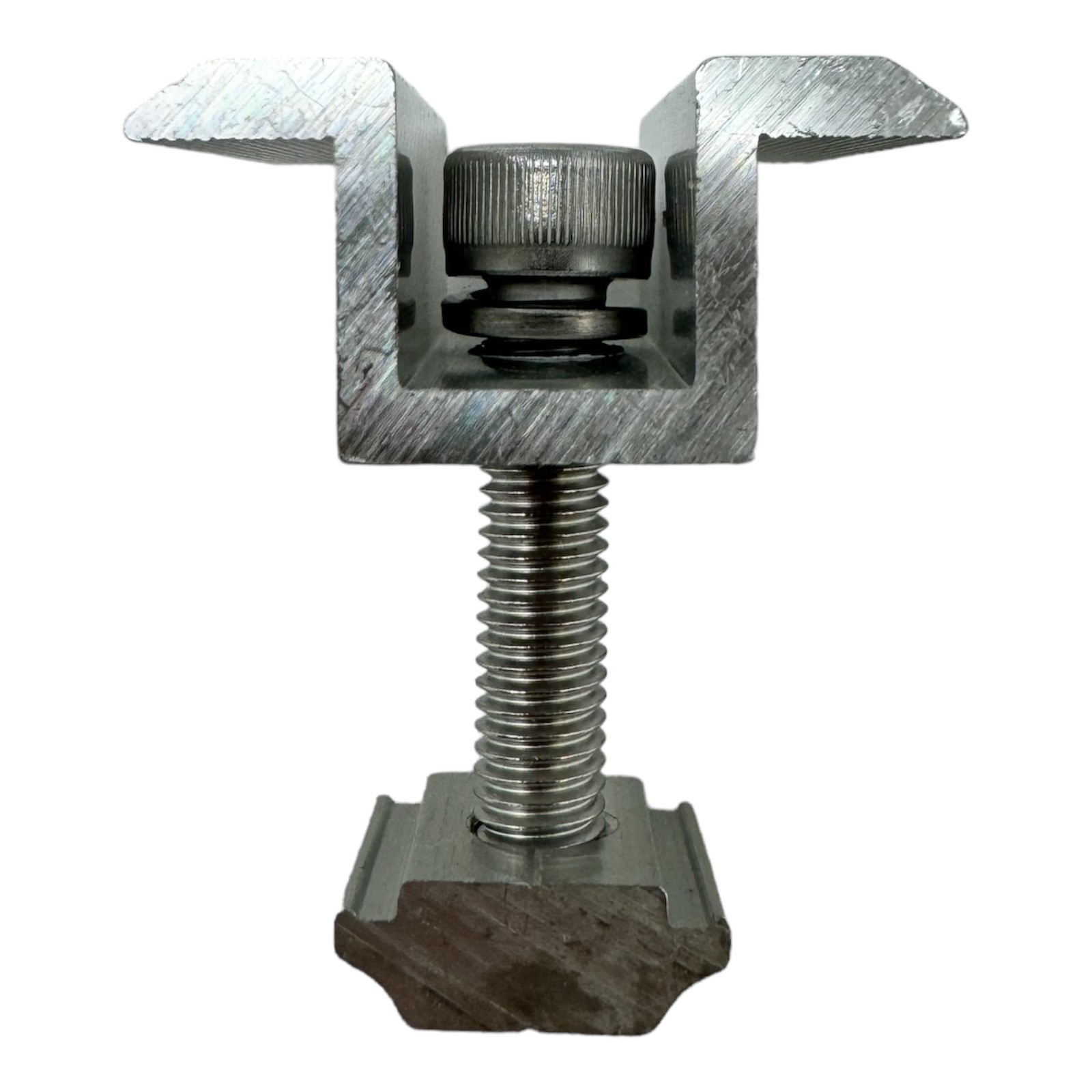 Étant donné que la connexion du panneau solaire est un composant important des installations photovoltaïques, le support du panneau solaire en forme de T est en aluminium. Ainsi, le système est résistant à la rouille, à la corrosion et aux UV. Le module peut être monté rapidement et facilement sur vos rails solaires à l'aide des vis.