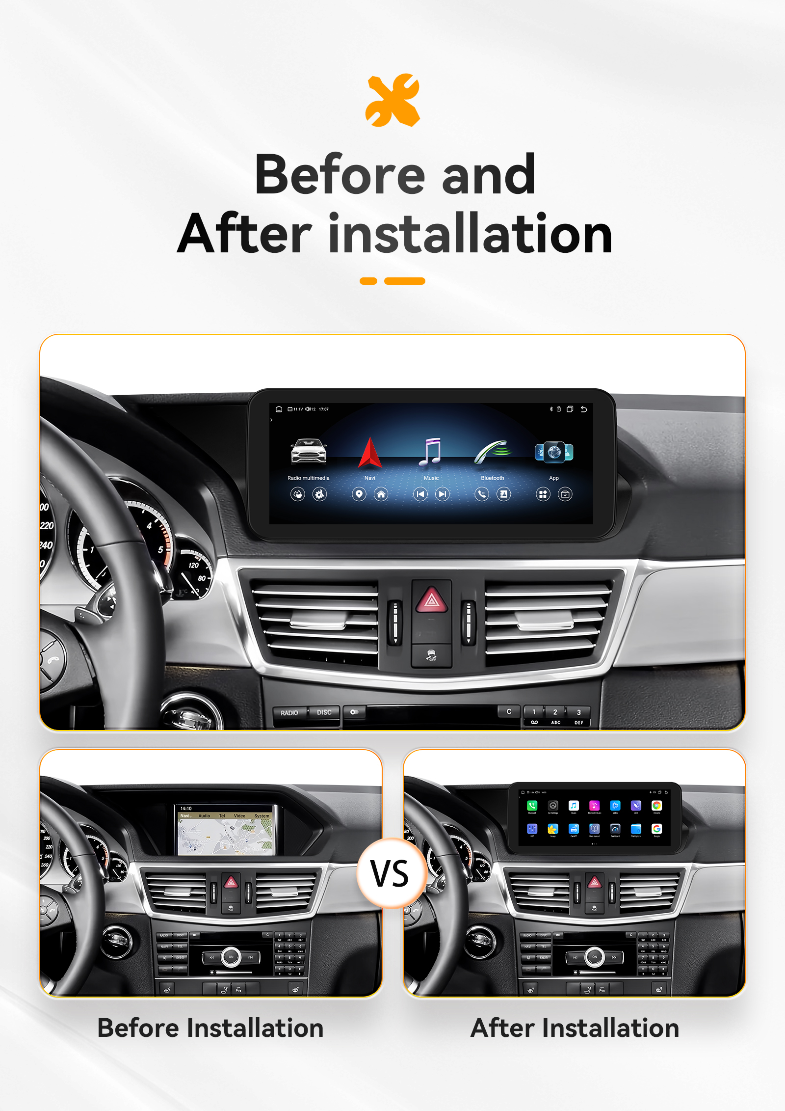 - Main Menu Status Bar display: Can be changed to Music/Radio/BT-Stereo Player and Clock/Date/Week