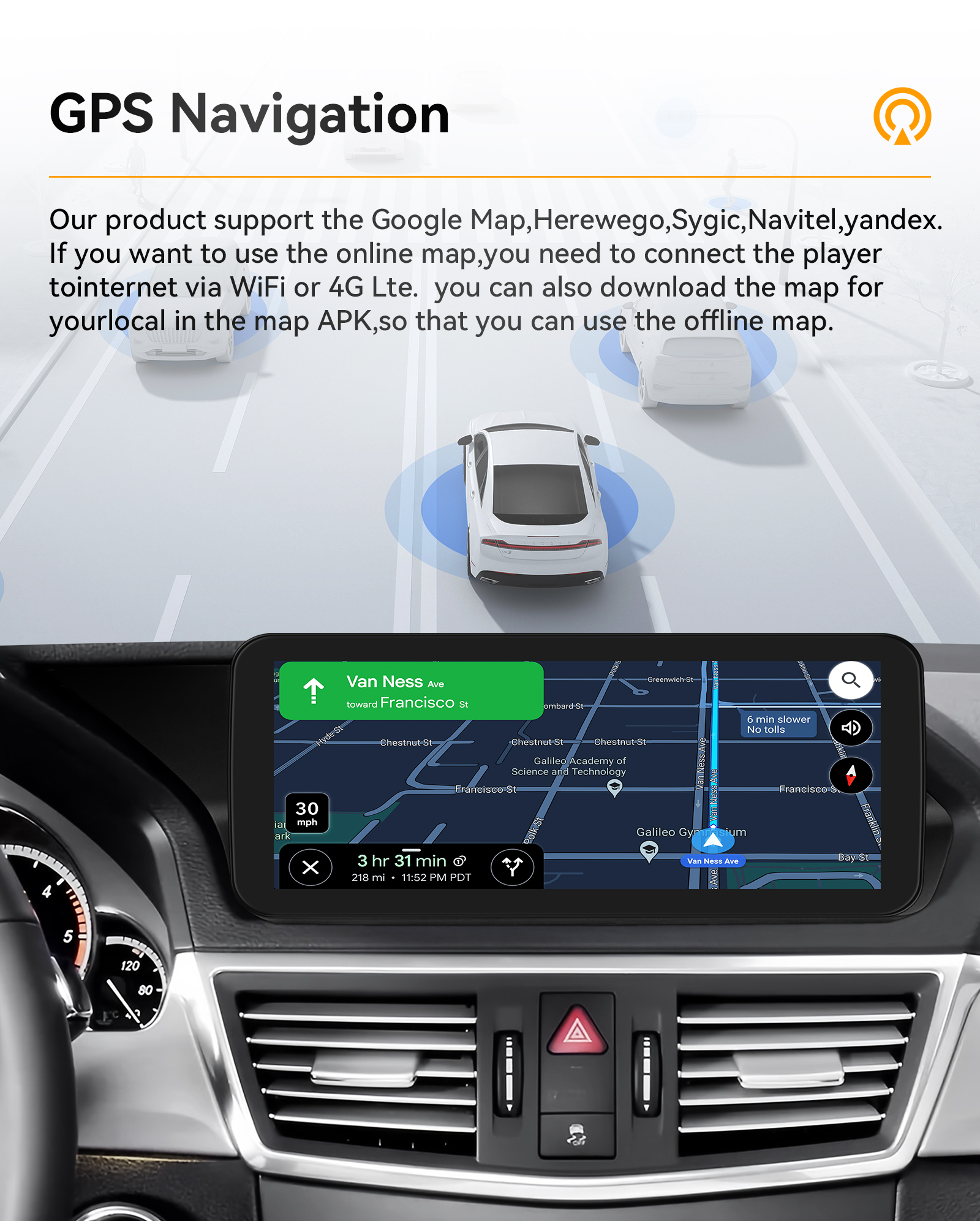 - Online Navi: Yes, support maps online navigating