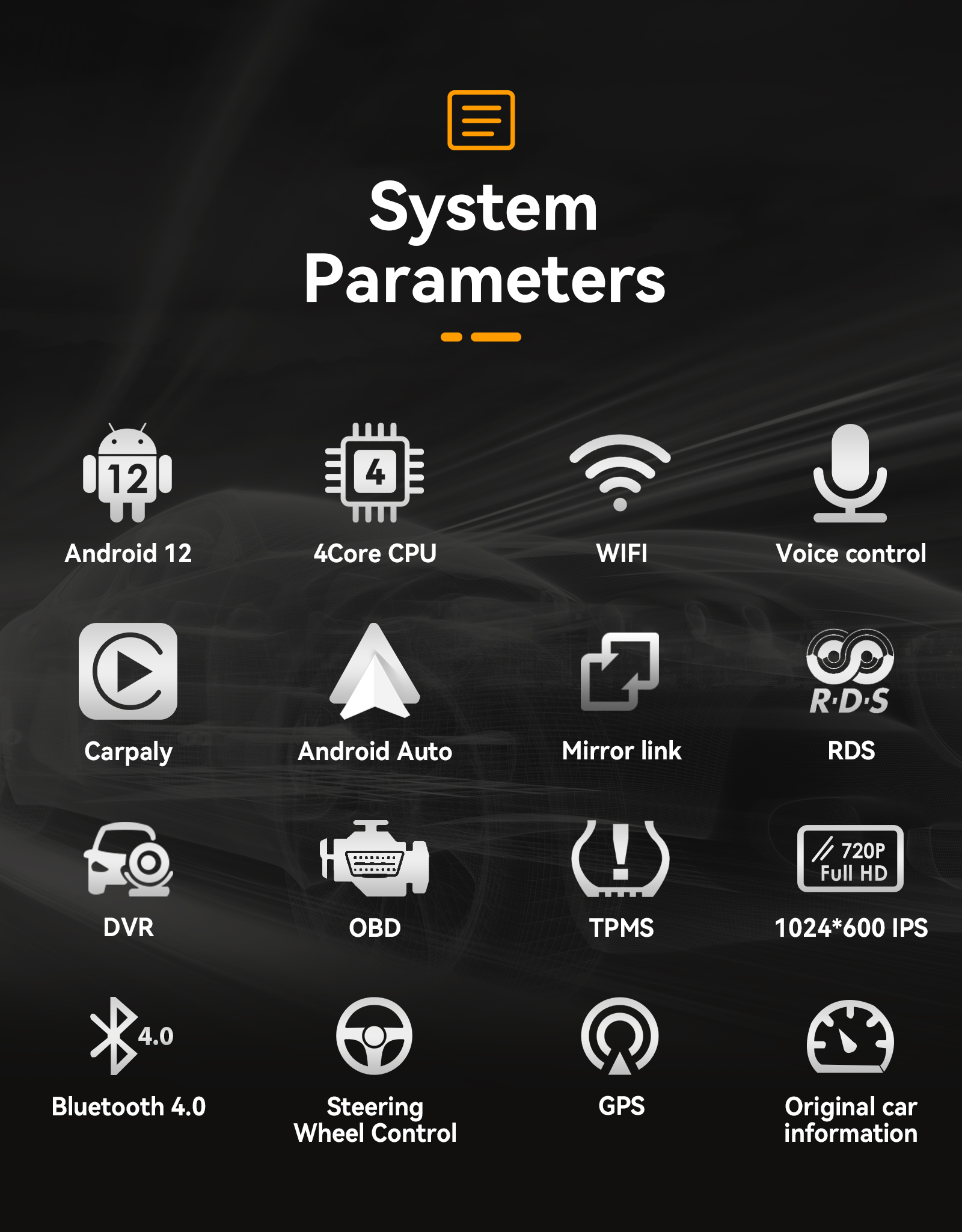 - Built-in Car Recorder App: Yes, just connect a USB Camera to use this function