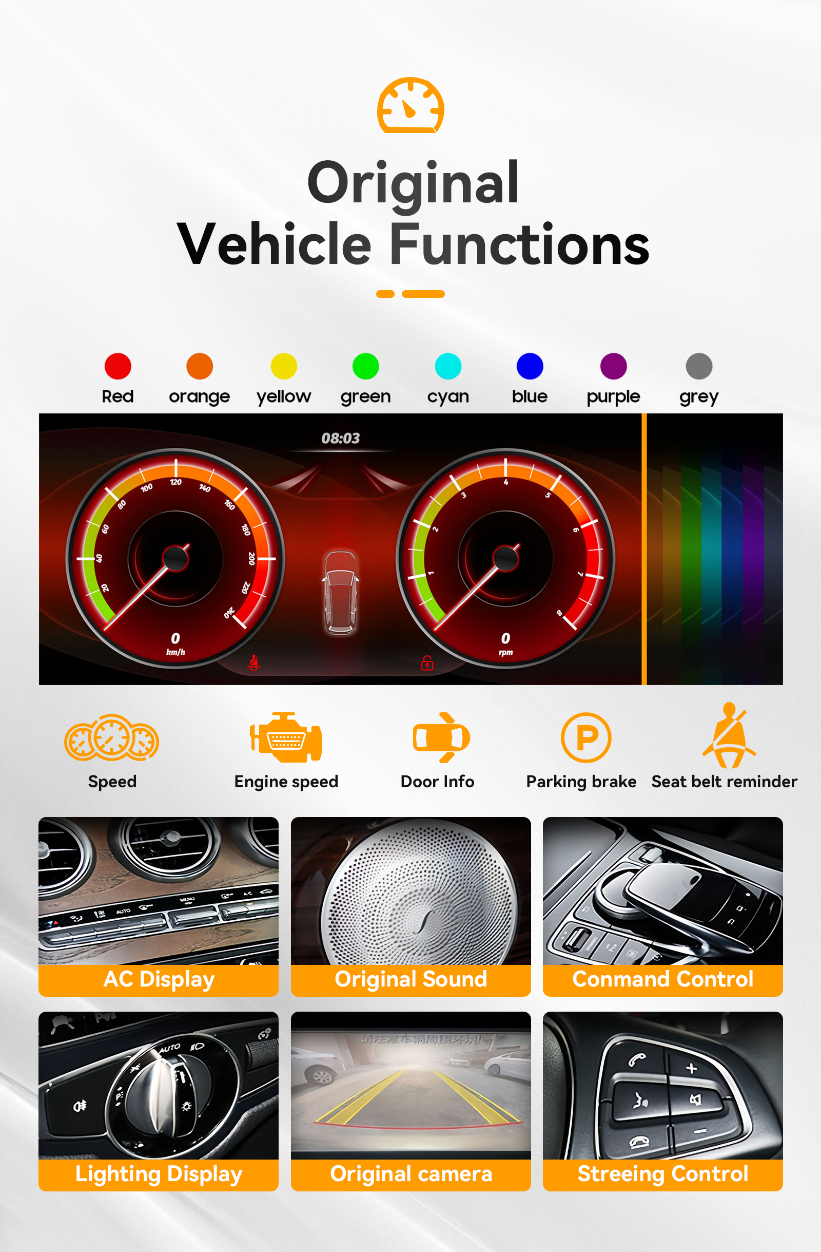 - Driving safety: Watching Video, Reversing X-mirror/Volume, Reversing Trajectory/radar Display, Rear view ruler