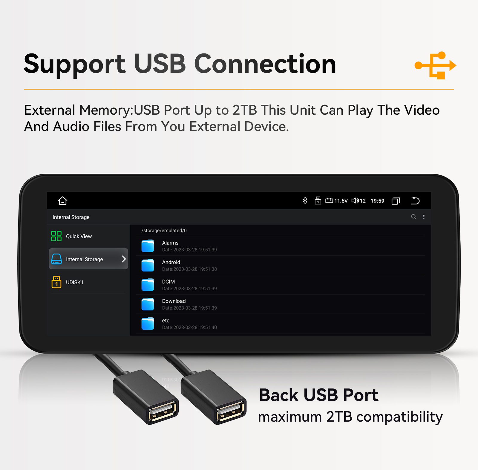 - Position: 2 USB Port, can be connected with Media/Camera/DAB+ Box / Smartphone