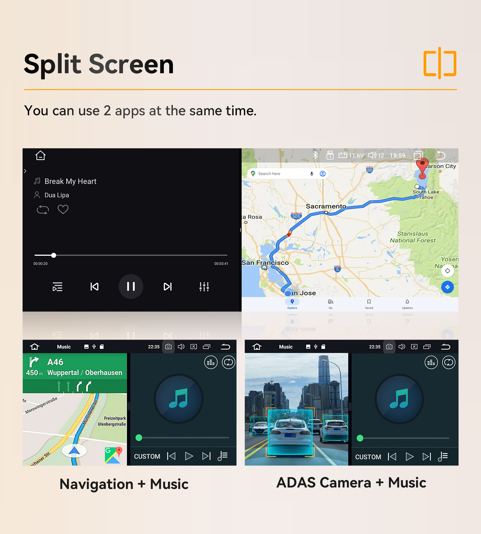 - Dual Zone: Yes, navigating while music playing