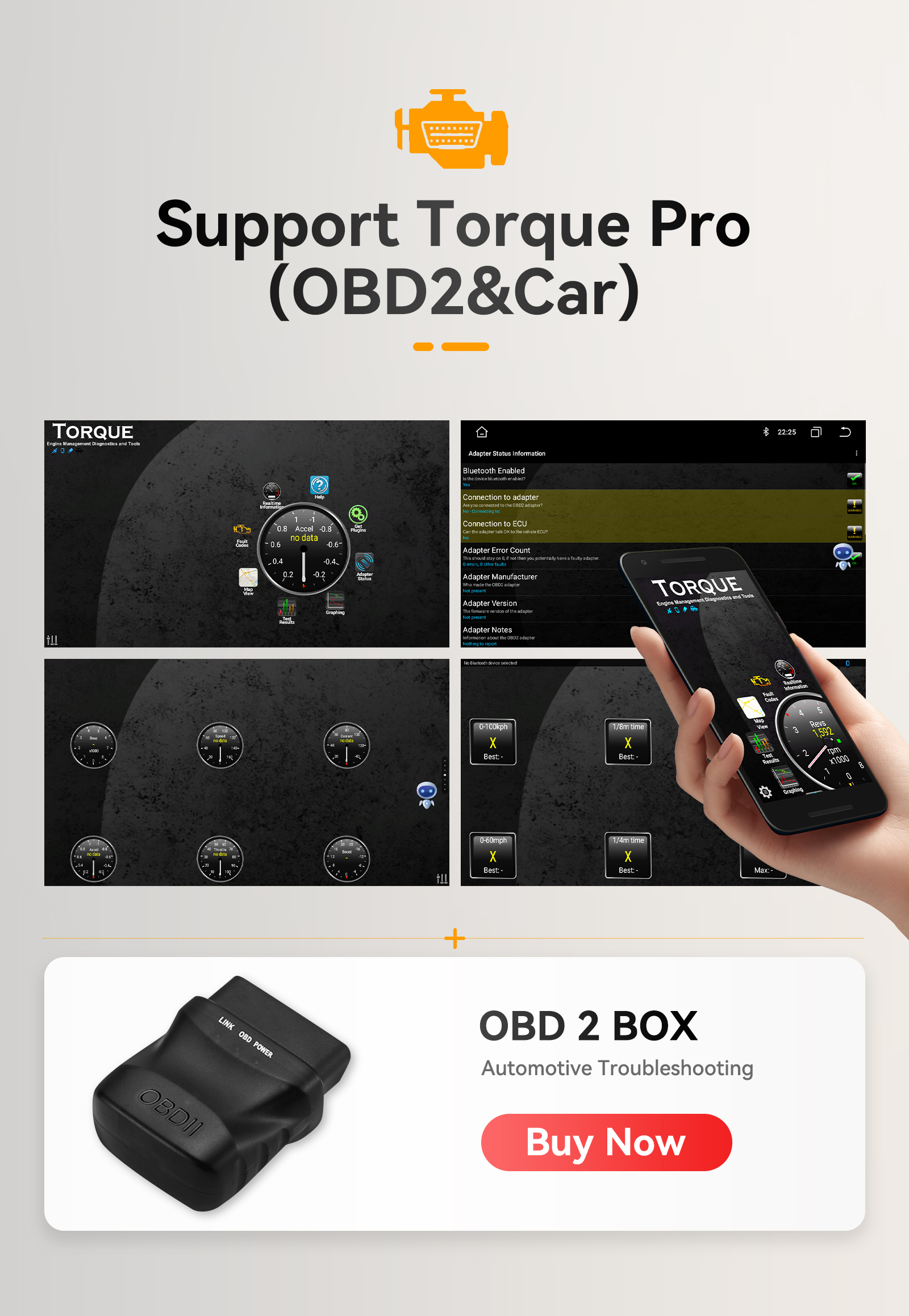 - Support Torque Pro(OBD2 &Car): Yes, you can connect a Bluetooth OBD2 Scanner Tool to use this function