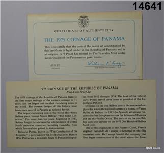1975 PANAMA PROOF 9 COIN SET BOX/COA GEM! FRANKLIN MINT #14641