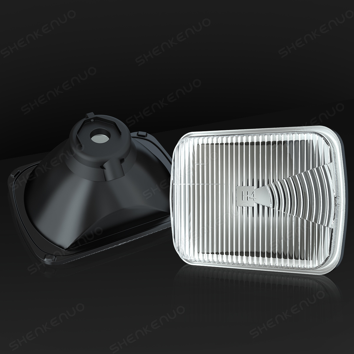 Product Title: 7-inch Square Headlight Housing with H4 Halogen Bulb (3200K/4200K, 6000LM) - Universal Fit for Trucks, Jeeps, SUVs & Off-Road Vehicles