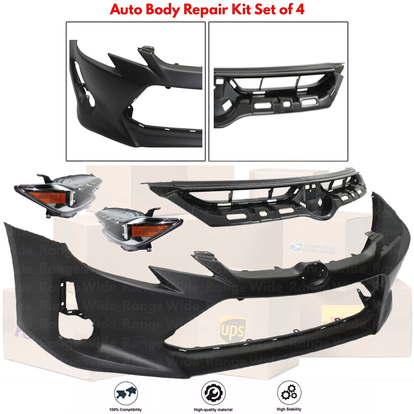 | Items Included | (1) Front Bumper Cover (1) Front Grille Assembly (1) Headlight Assembly Set of 2 |