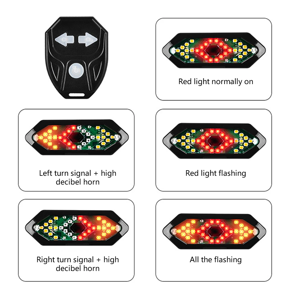 Bicycle Turn Light Cycling Taillight with Horn Smart 5 Modes Remote Control USB Rechargeable Indicator Light Safety Lamp