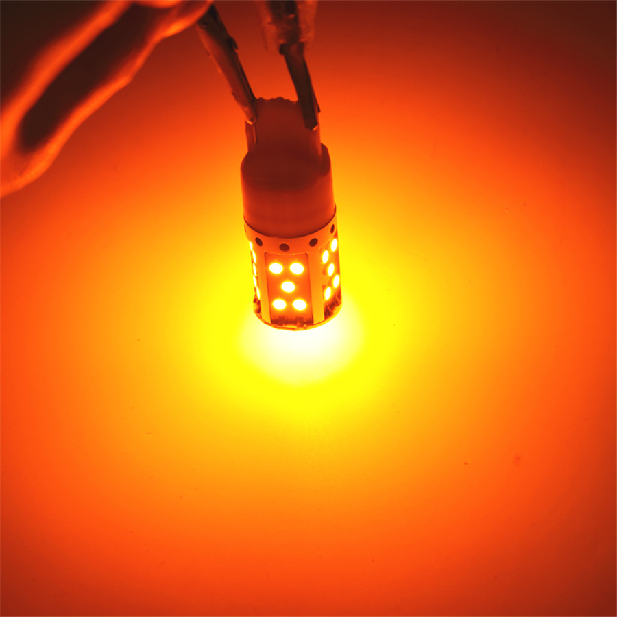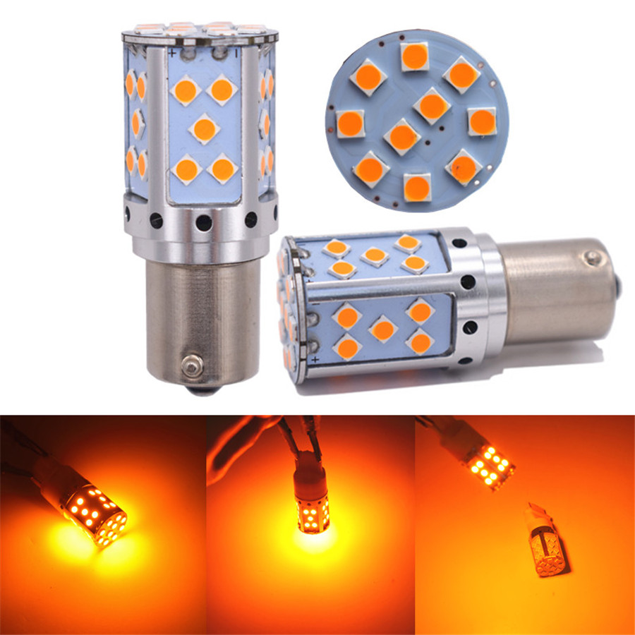 This no hyper flash no resistor required LED turn signal bulb is powered by 35 pieces of 1.5W each 3030 SMD LED chipsets with an extremely bright gorgeous amber glow. It is about 3x brighter and shaper than the stock incandescent bulbs so it is perfect for the turn signal upgrades.