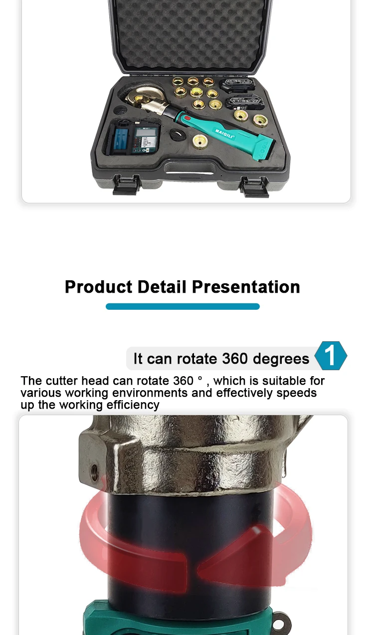 3.The ISO-certified ES-400 comes with a powerful 18V electric battery, providing consistent, high-performance output of 120KN. This ensures efficient and rapid crimping, maximizing productivity while minimizing downtime.