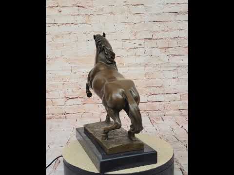Mounted on a polished black marble base, the sculpture combines classic materials with enduring craftsmanship, making it a sophisticated decorative piece. Whether displayed in a home, office, or gallery, this horse sculpture by Milo adds a touch of dynamic elegance and is ideal for collectors of fine animal art or equestrian enthusiasts alike.