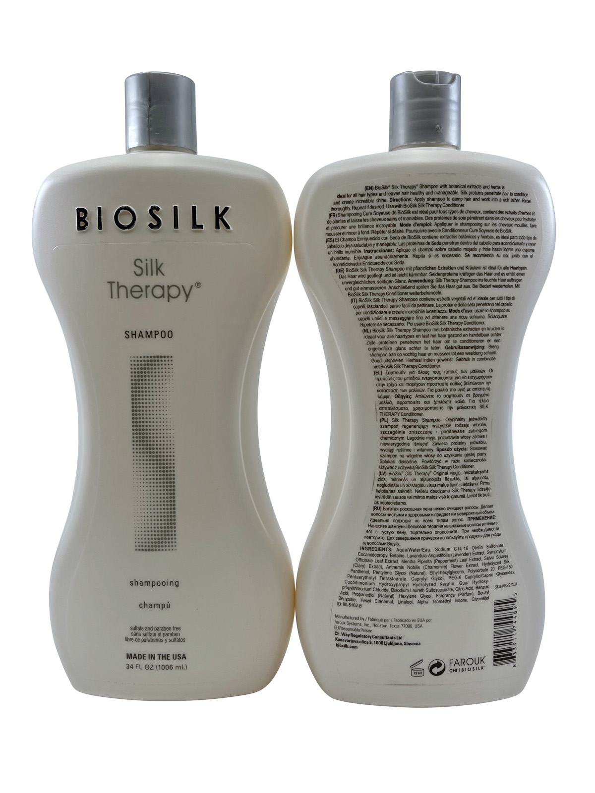 Biosilk Silk Therapy Shampoo Sulfate Free 34 OZ Set of 2 Bottles