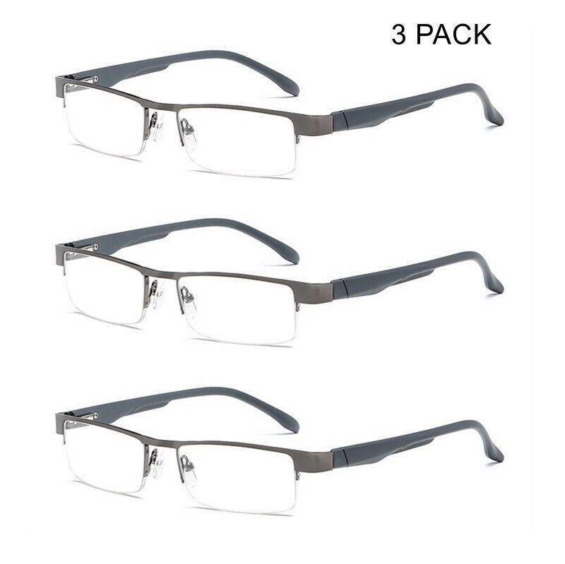 Reading Glasses 3 PACK Mens Business Spring Hinges Half Rimless Readers +1.0~4.0