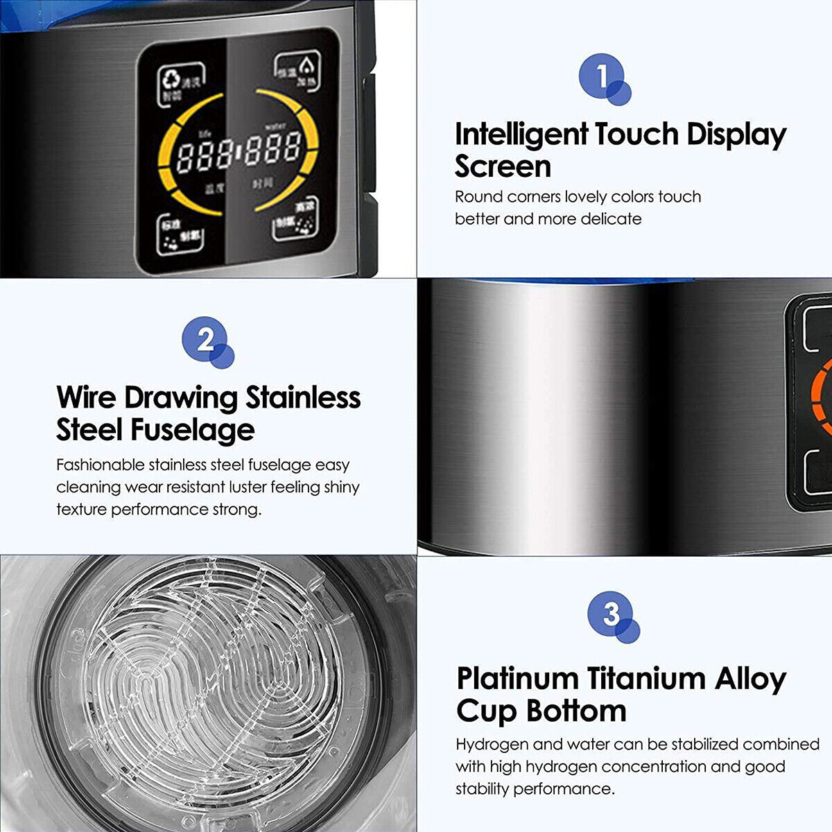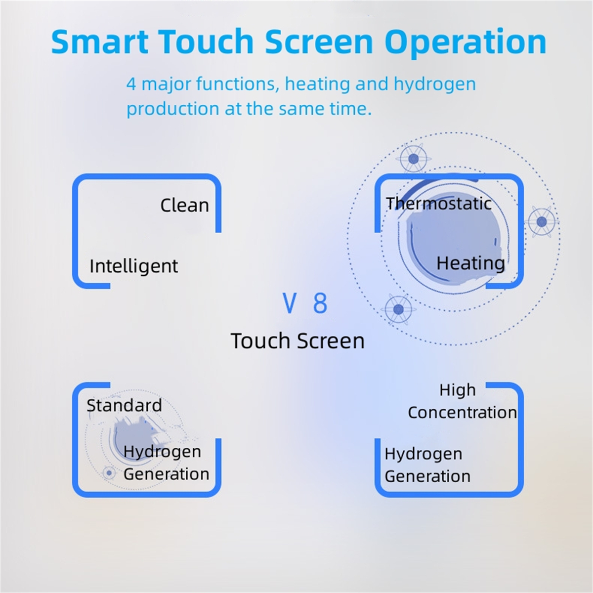 2. Standard hydrogen production function: Gently touch the "Standard Hydrogen Production" button, and the system will enter the hydrogen rich water production state with a hydrogen content of 600-900ppb; If you lightly touch the "Standard Hydrogen Production" button again, the system will stop producing hydrogen rich water.