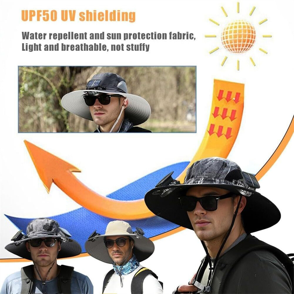 Stay Cool and UV Protected: Our solar cooling hat is designed with 2 fans on the sides of the hat, and the adjustable drawstring makes you more convenient to wear; the innovative outdoor sun hat with solar fan is the perfect companion for outdoor enthusiasts. The provides ample shade, protecting your face and neck from harmful sun rays.