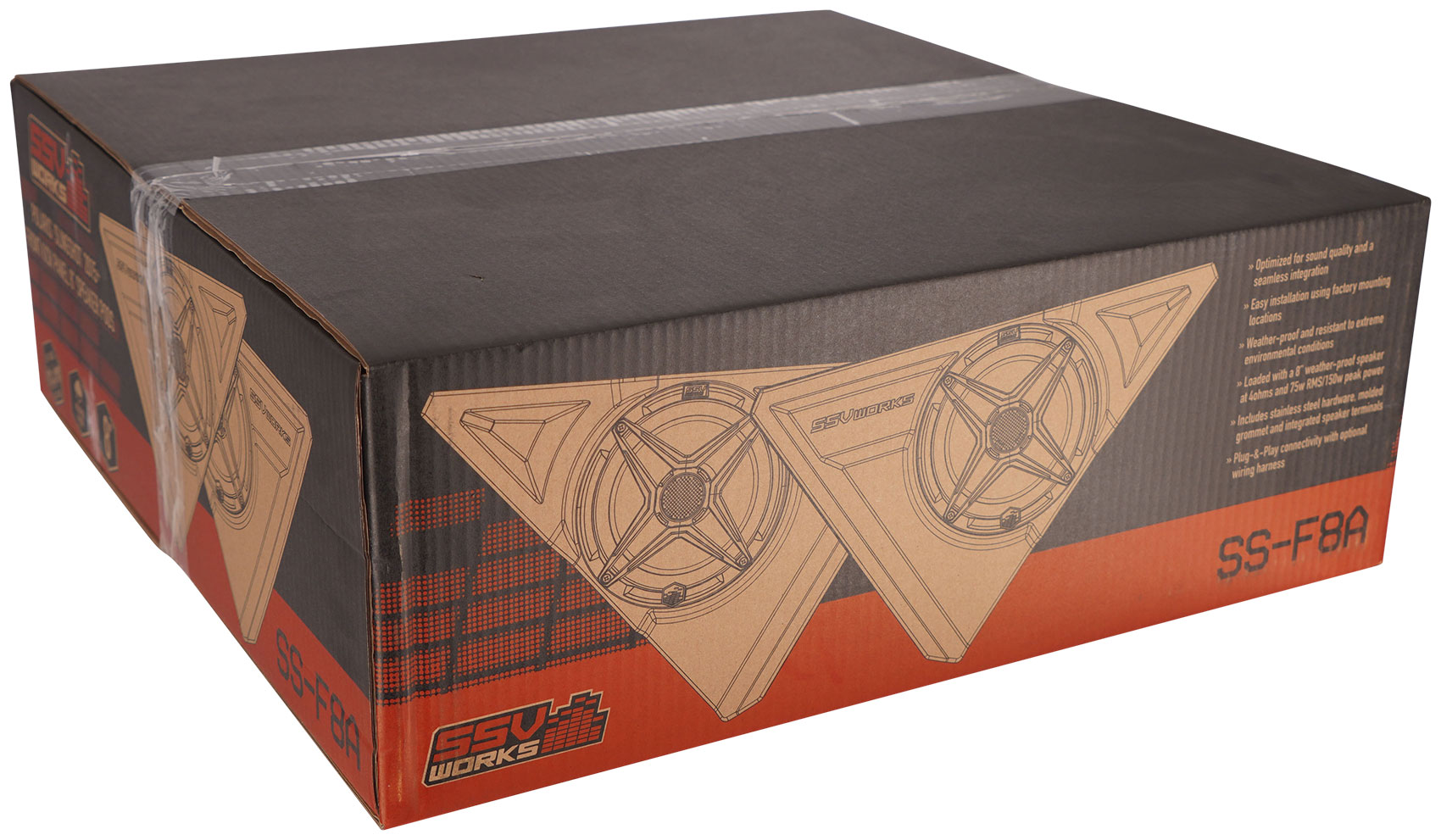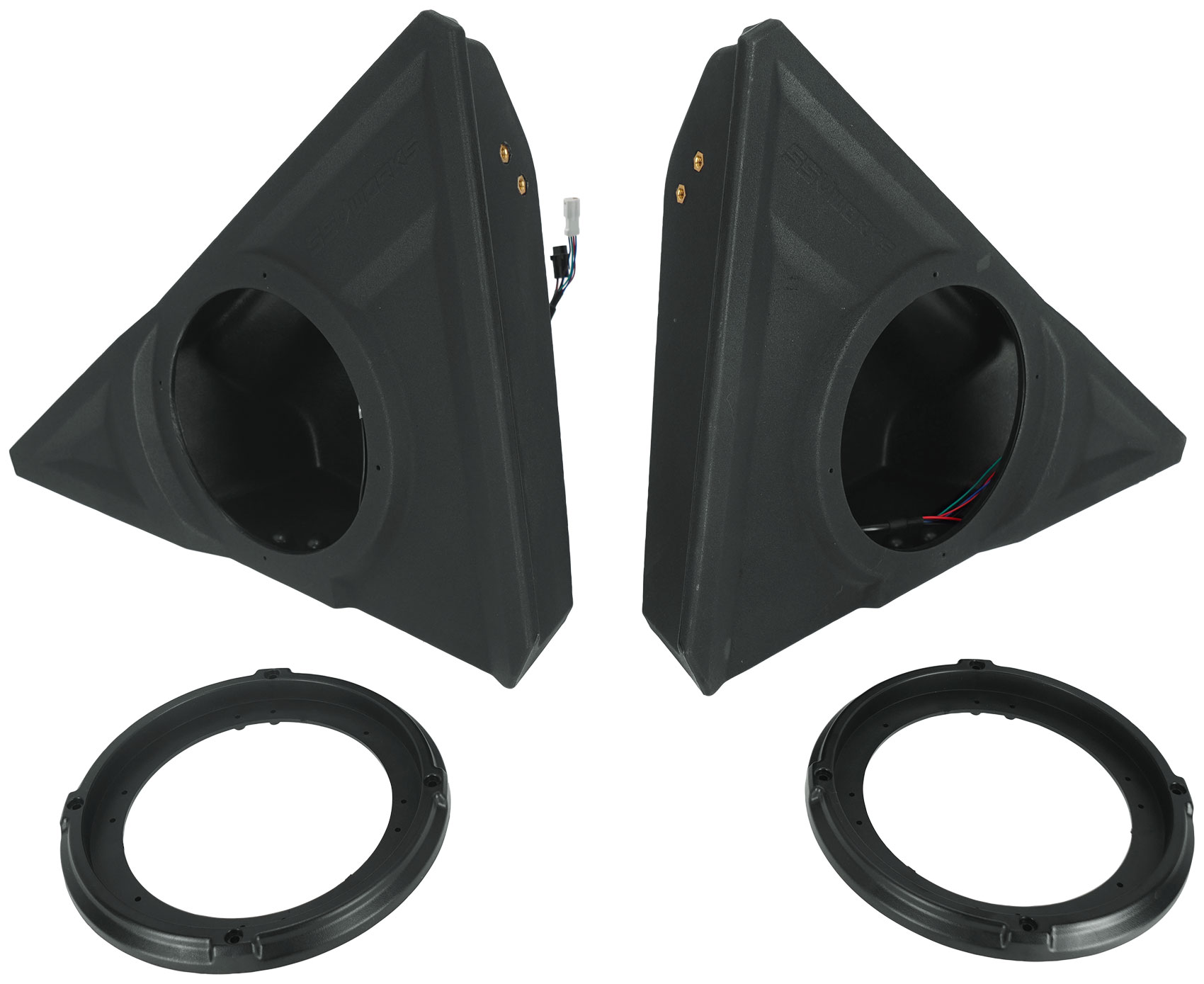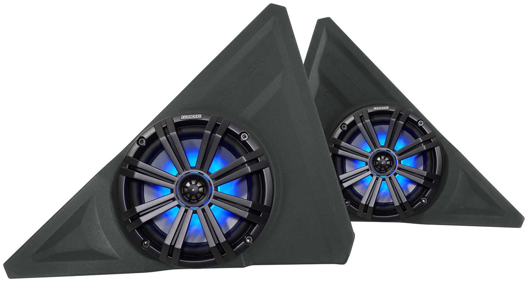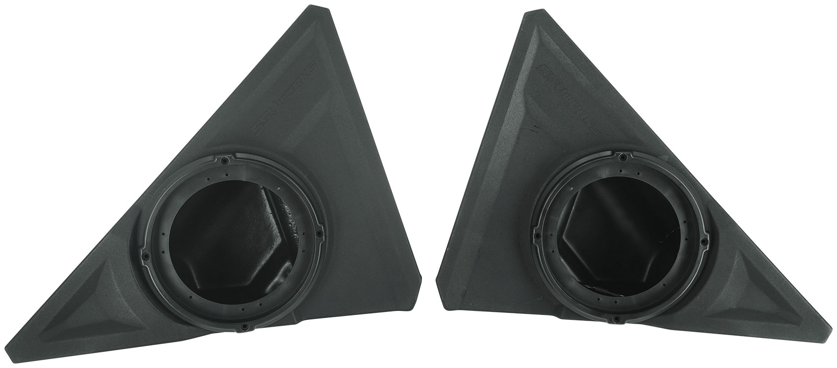 The SSV Works custom molded speaker-pods are designed to clamp into the frame away from your legs. They are 100% rotomolded for the best durability, sound quality and bass response. These speaker-pods are made for standard 8" speakers, but come with an adapter to fit a 6.5" of your choice. Speakers not included.