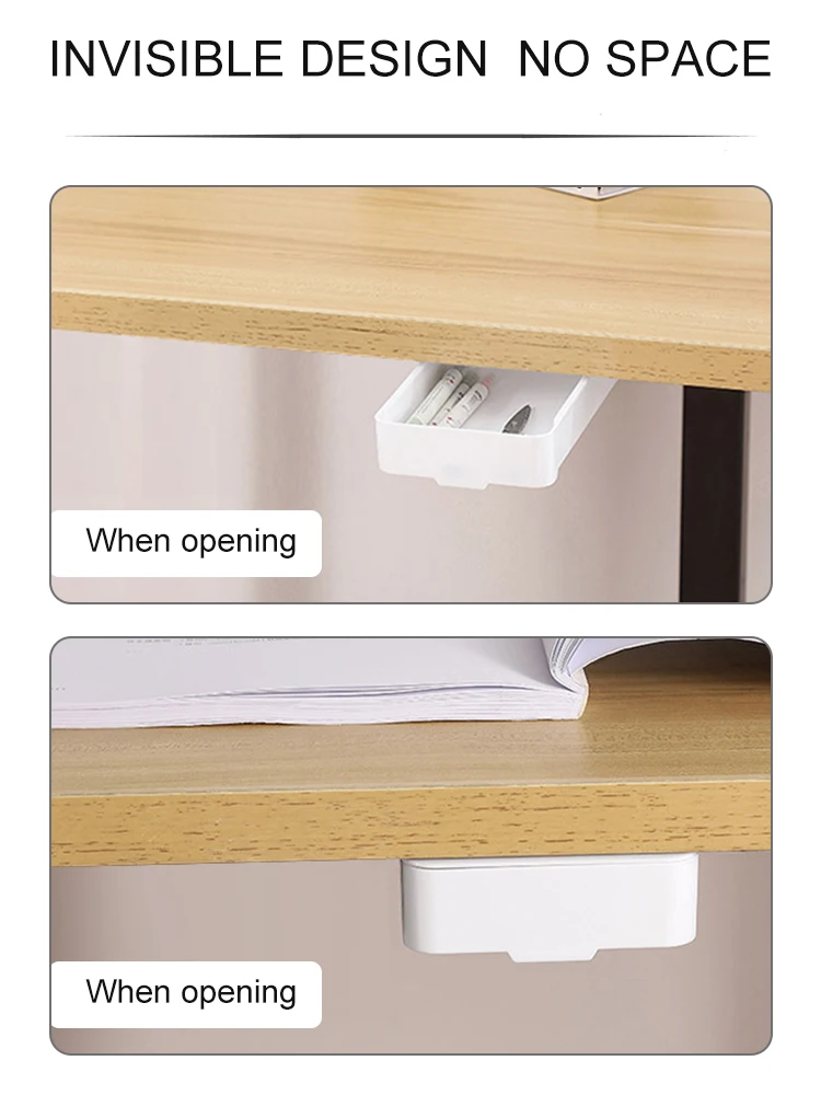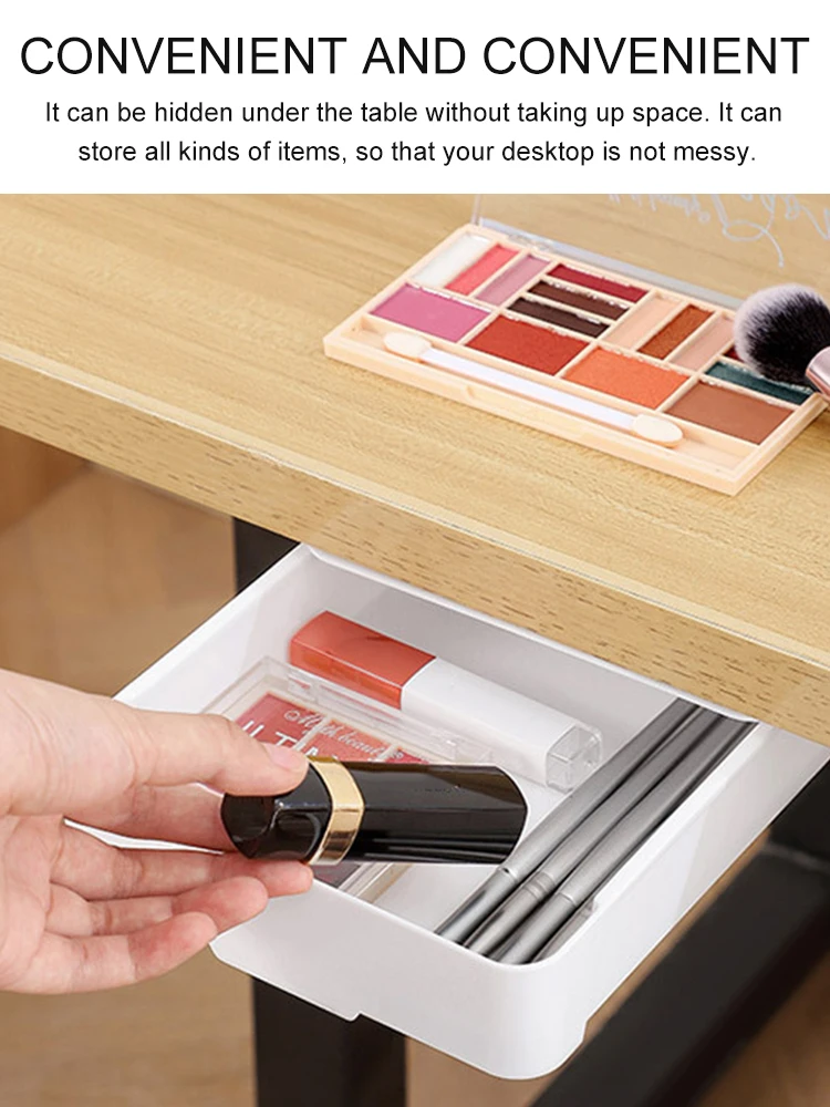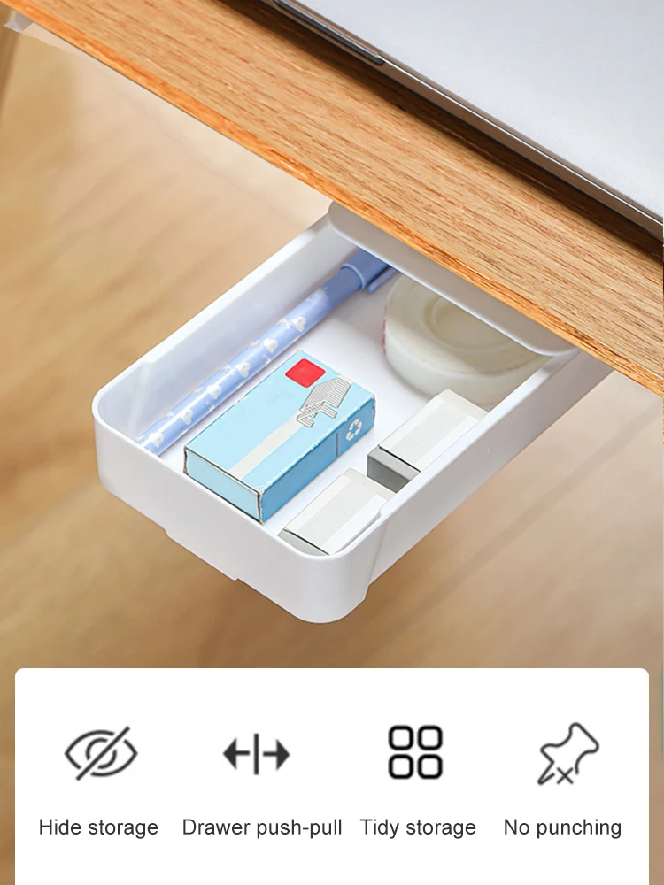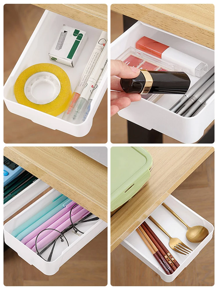 Under The Desk Drawer Type Desktop Storage Box Hidden Hanging Stationary Holder