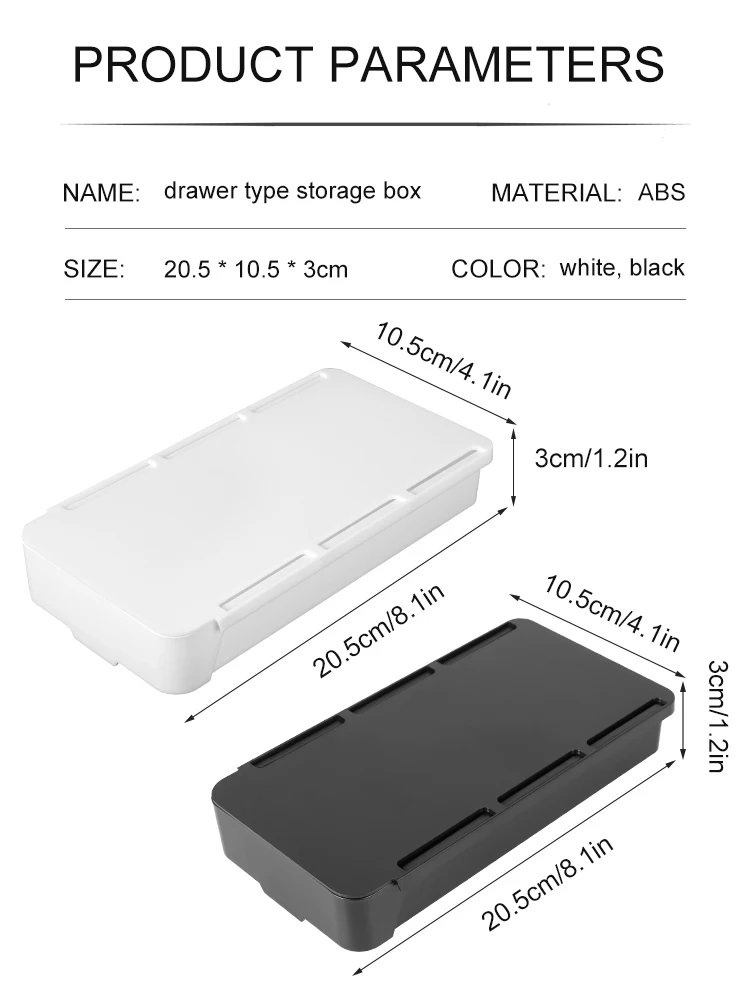 [Specifications] Package includes an under desk storage drawer organizer (with mounting tape), size 20.5x10.5x3cm / 8.07x4.13x1.18inch, available in black, white for your choice.