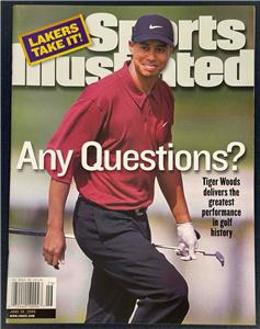 | This is a June 26, 2000 Newsstand Edition Sports Illustrated Magazine with Tiger Woods on the cover. Since this is a Newsstand Edition it has never had a mailing label on it. The magazine is in Near Mint to Mint condition. What you see in the photos is what you will receive. The magazine will be shipped out well packaged via USPS Ground Advantage. Be sure to check out my other items in my ebay store. Feel free to email me if you have any questions or would like better pictures or scans. Thanks.......Dan |