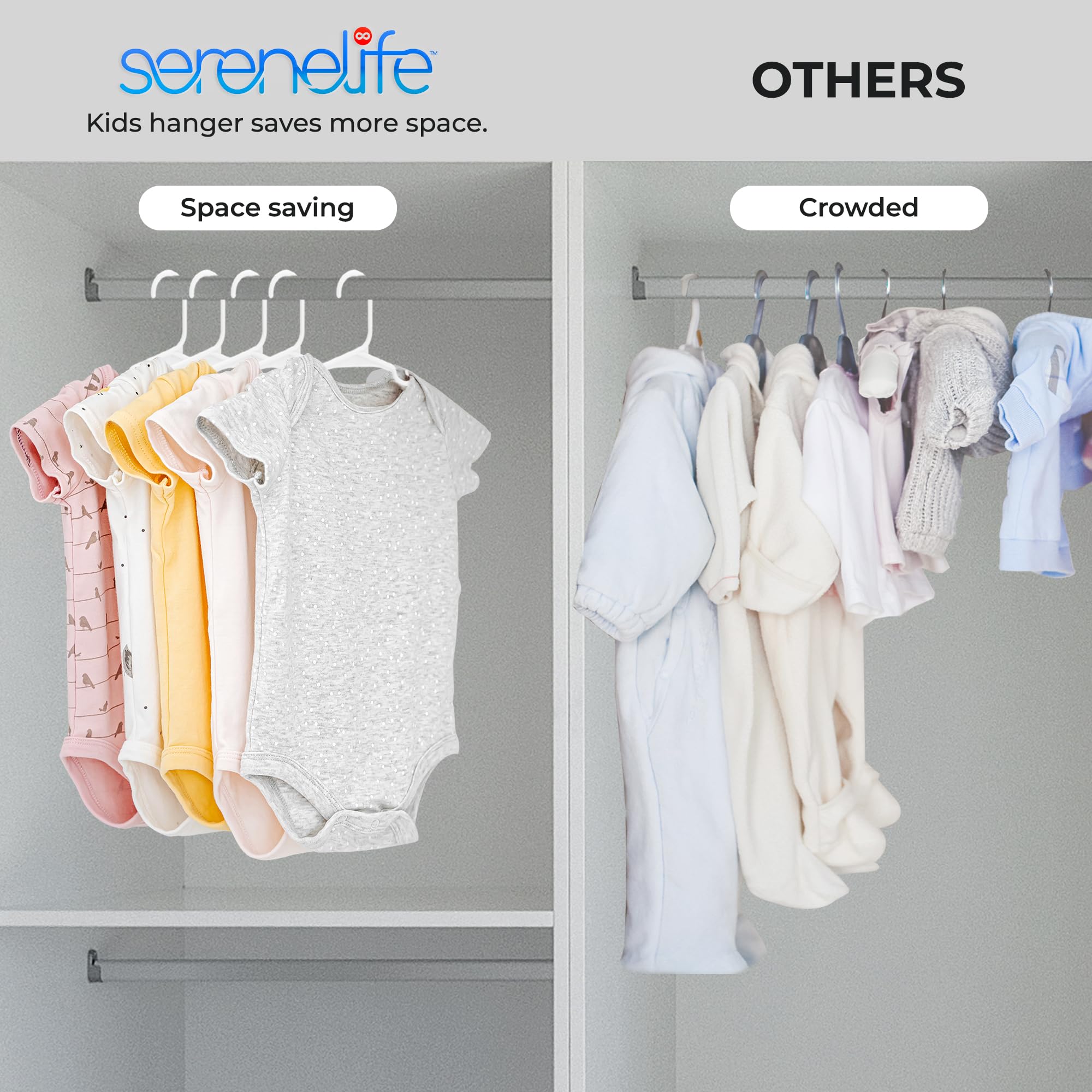 SereneLife 60 Pack Plastic Kids Hangers – Non-Slip Baby Hangers for Closet, Space-Saving Thin Design for Organizing Clothes, Infant, Toddler, and Newborn Clothing (White)