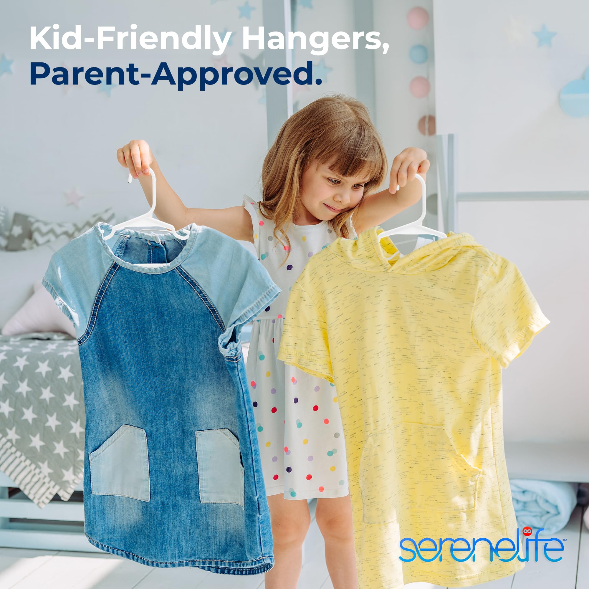 SereneLife 60 Pack Plastic Kids Hangers – Closets, Organizing Clothes (White)