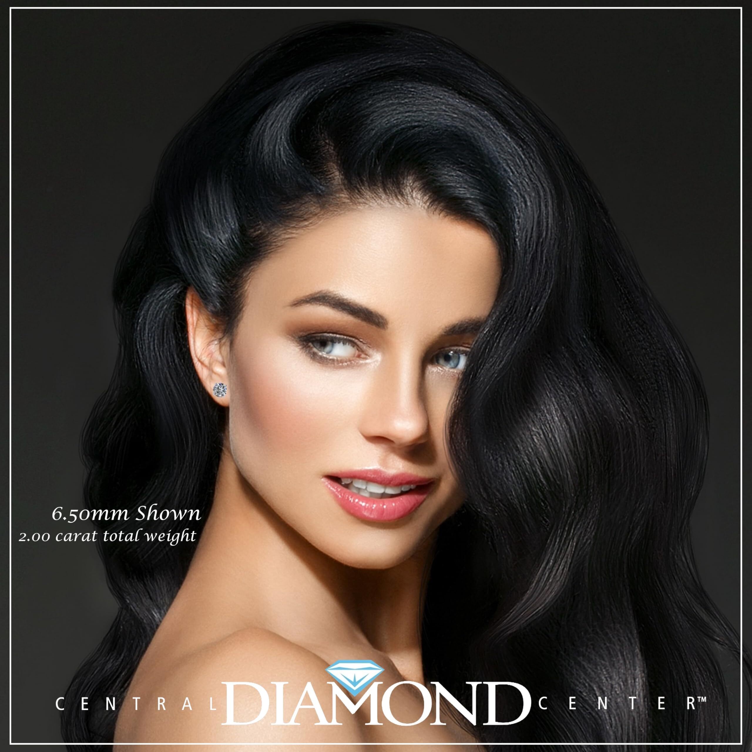Central Diamond Center 14K Solid Gold Post & Sterling Silver 4 Prong CZ Stud Earrings - Rose Gold Plated - 6.50mm - 2.00cttw