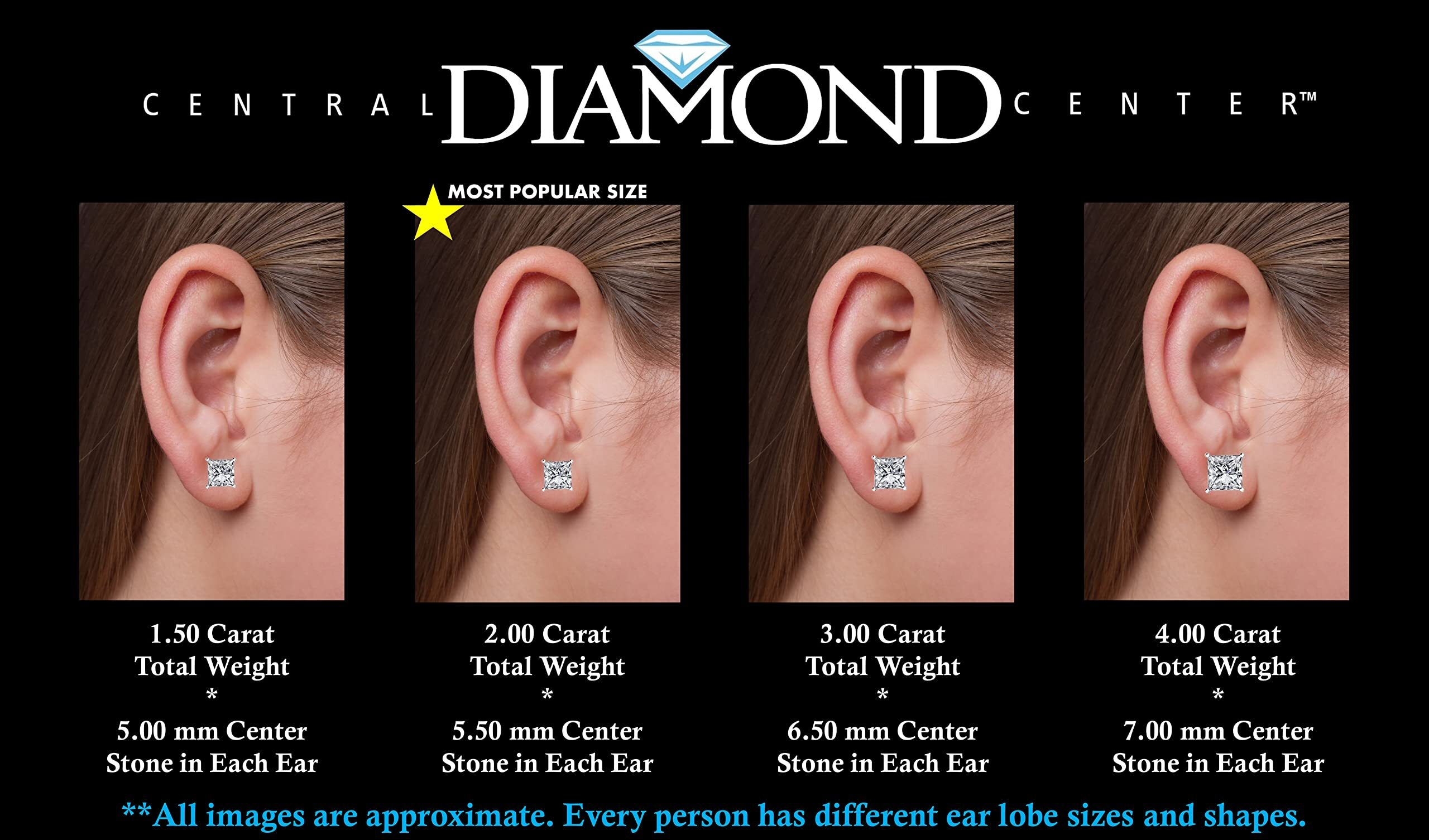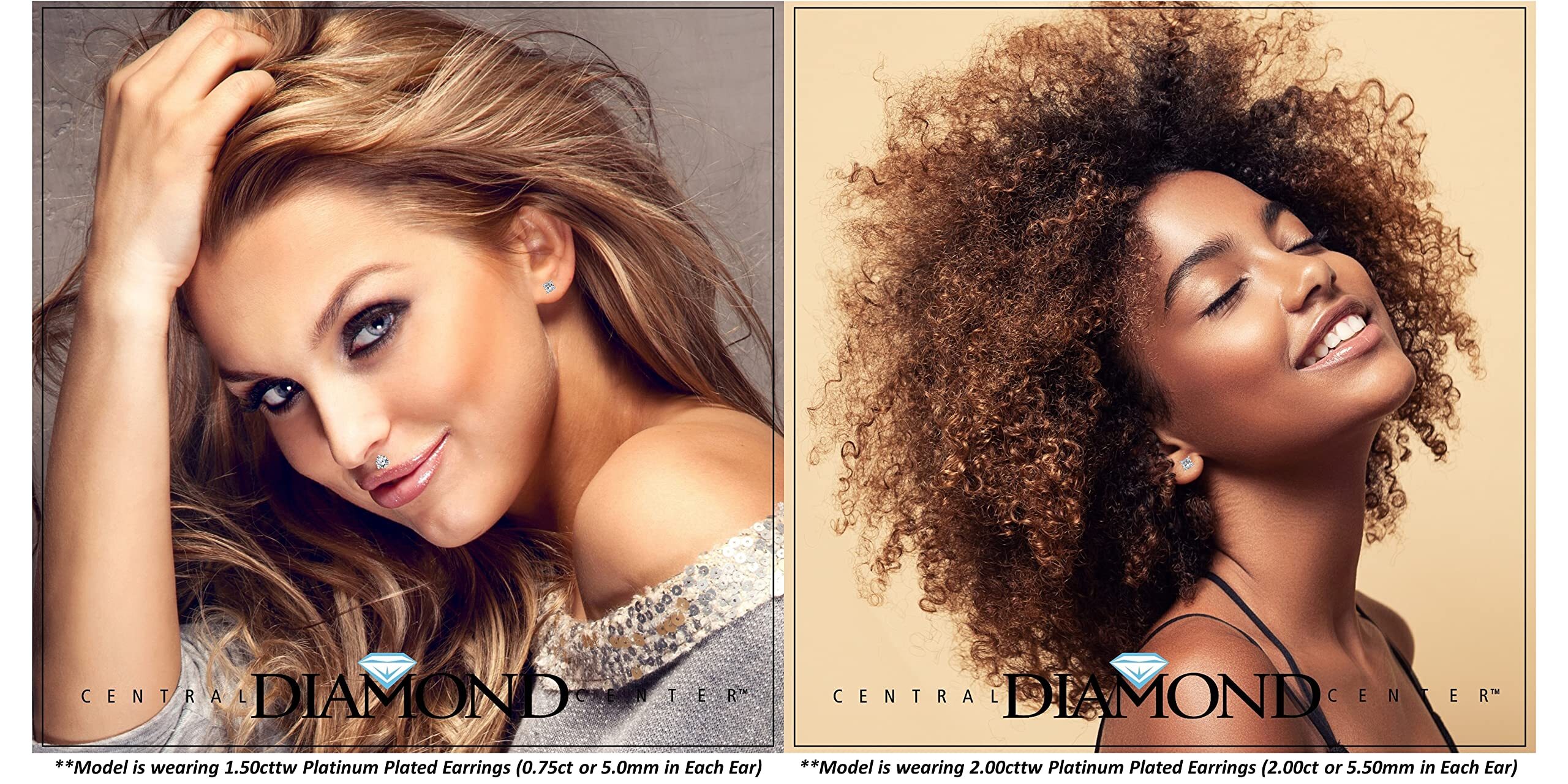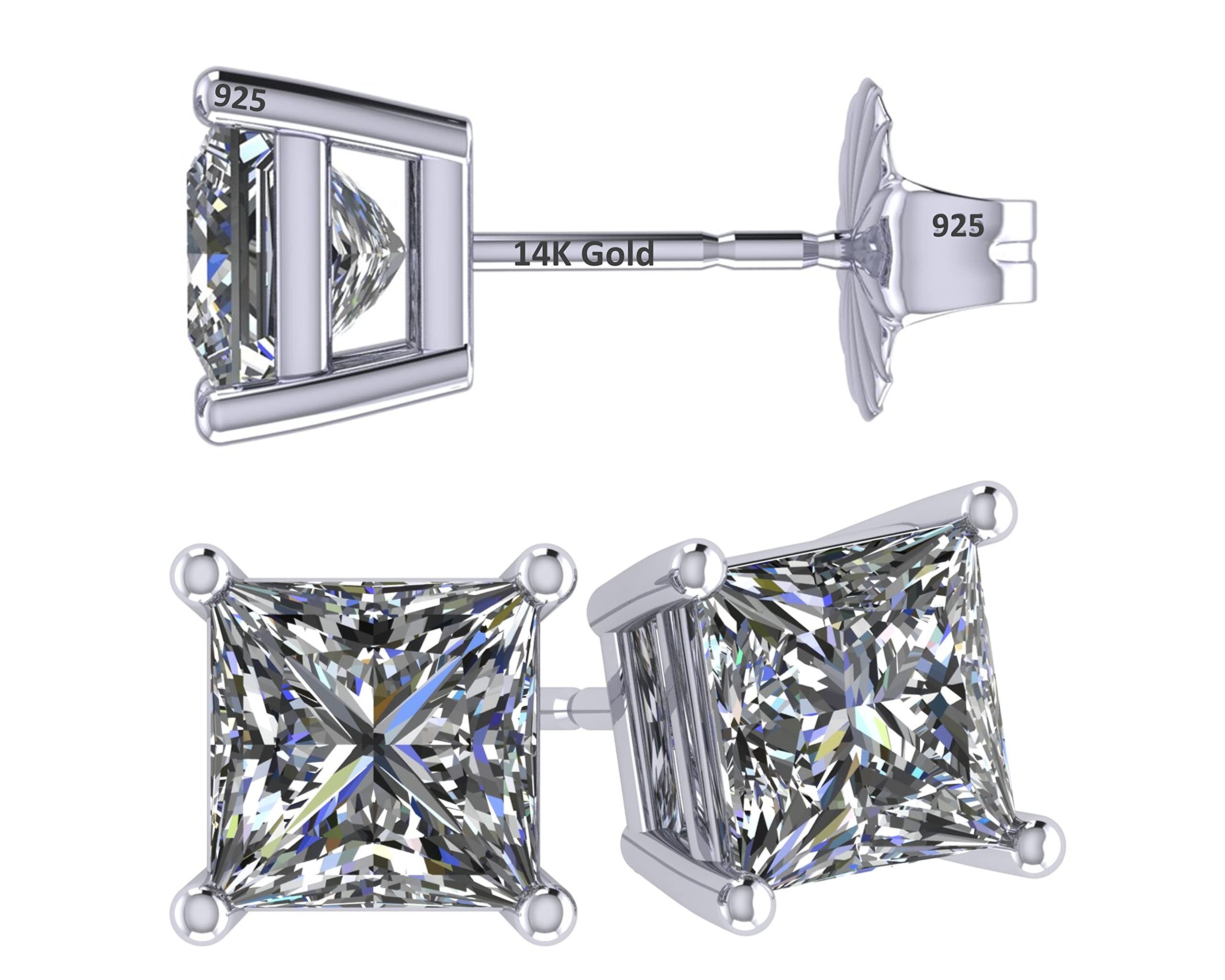 Central Diamond Center 14K Gold Posts & Sterling Silver Princess Cut CZ Stud Earrings - 5.0mm 1.50cttw - Platinum Plated