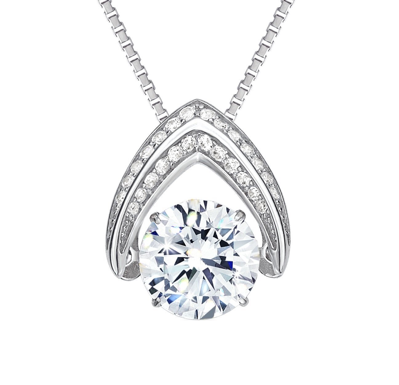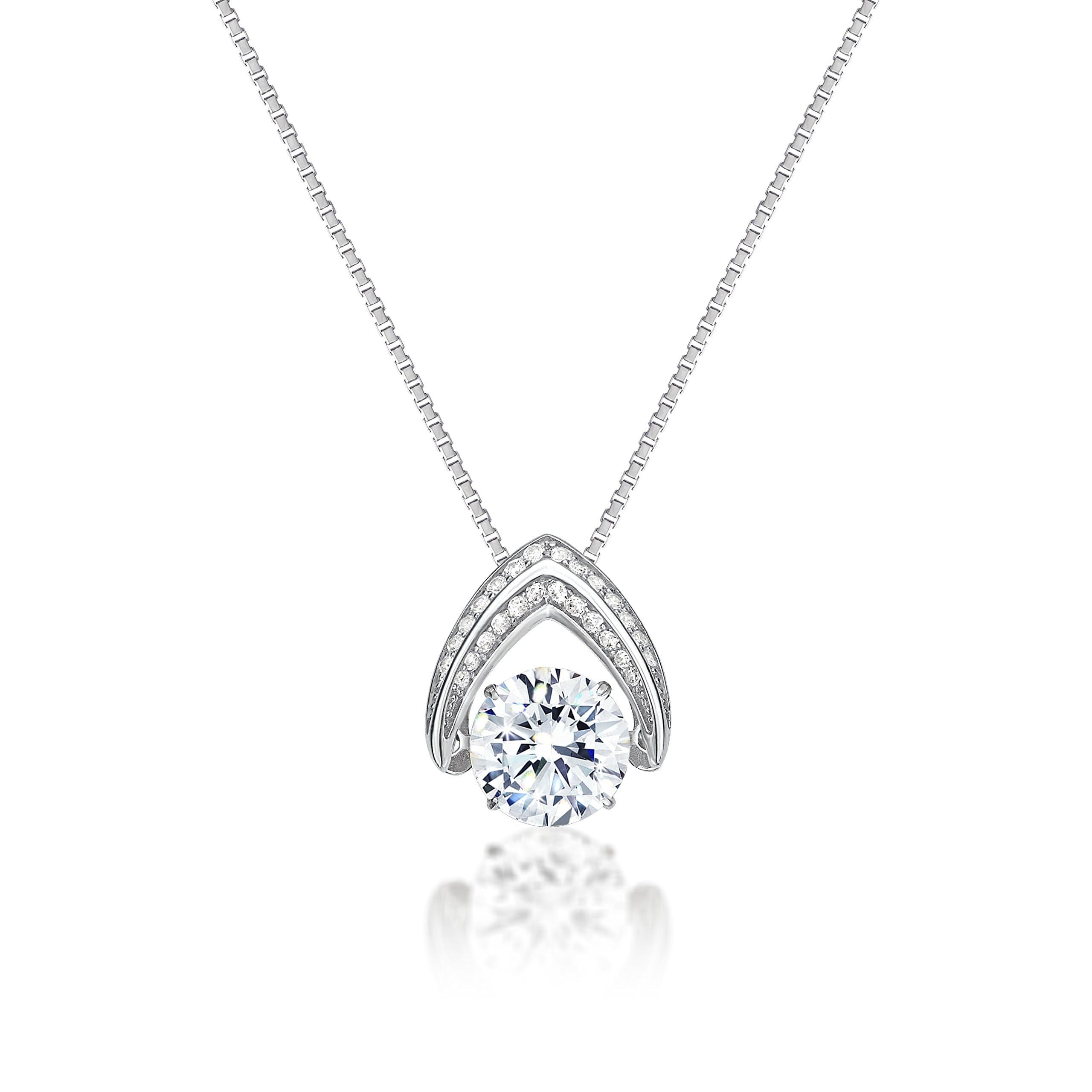 Central Diamond Center Ultimate Omega Dancing Gemstone Necklace Sterling Silver w/ Pure Brilliance Zirconia – Platinum Plated