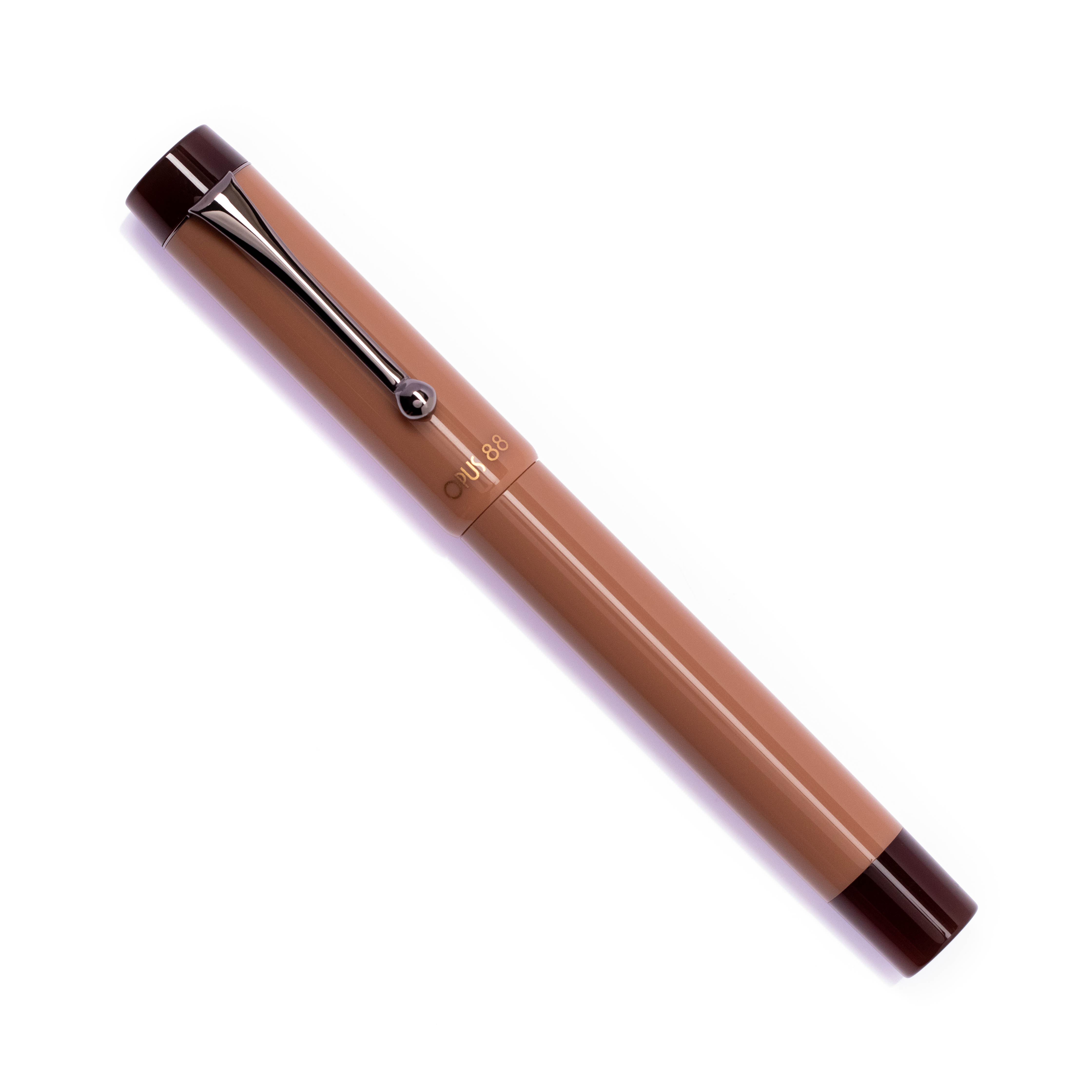 For 2025, Opus introduces the *Mocha Mousse* special edition—an elegant, dessert-inspired palette. Translucent warm beige resin is accented by a rich cocoa brown grip and blind cap, while the top finial is finished in a subtle almond hue. The clip and #6 stainless steel nib are treated with black PVD for a modern, cohesive aesthetic.