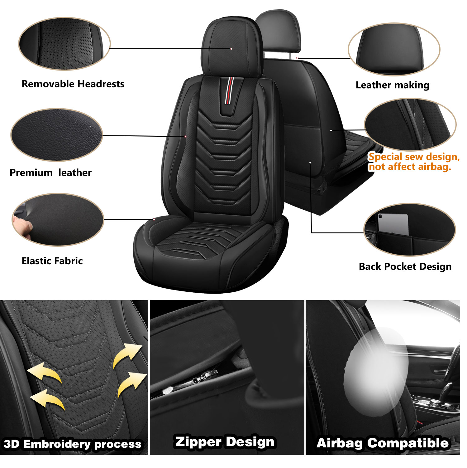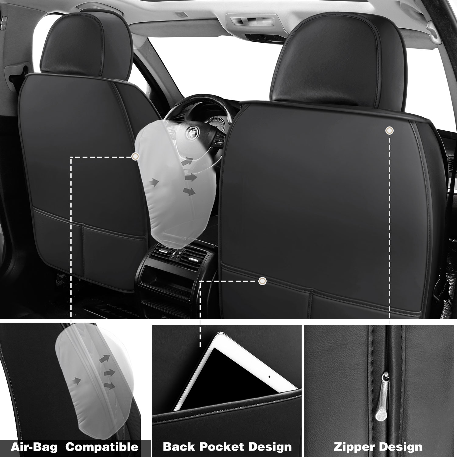 Special stitching on the sides allows for safe airbag deployment, ensuring your vehicle's safety features are never compromised.