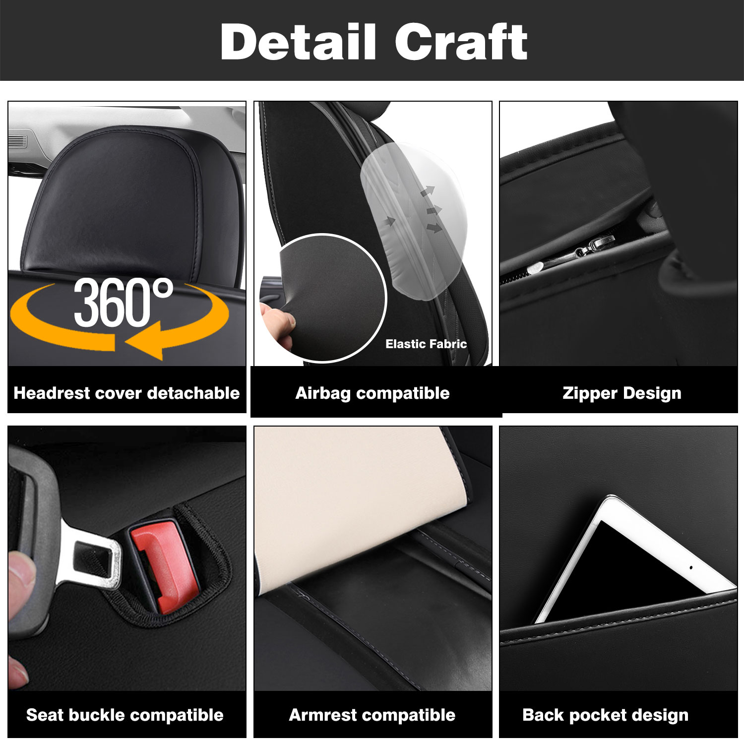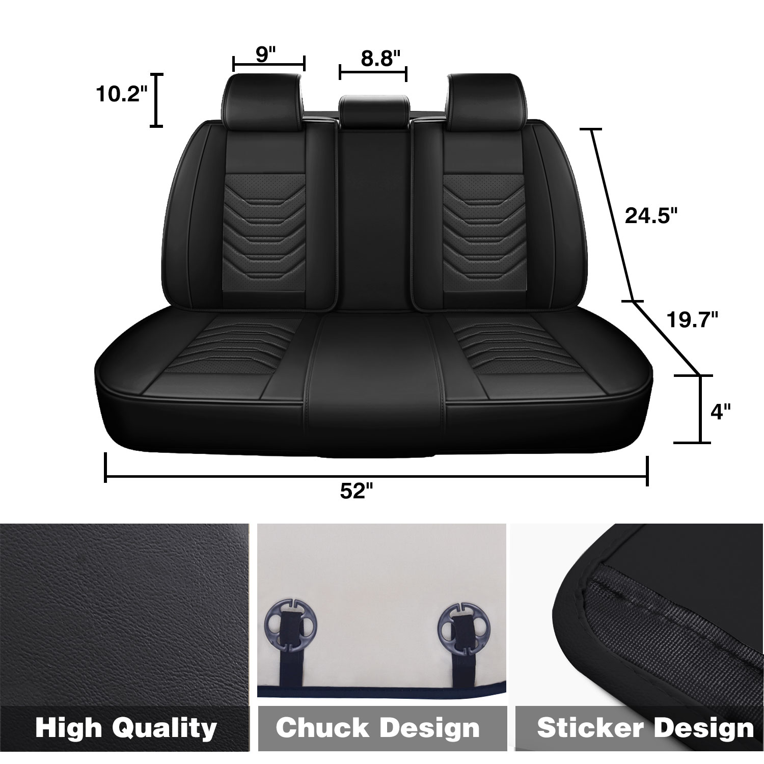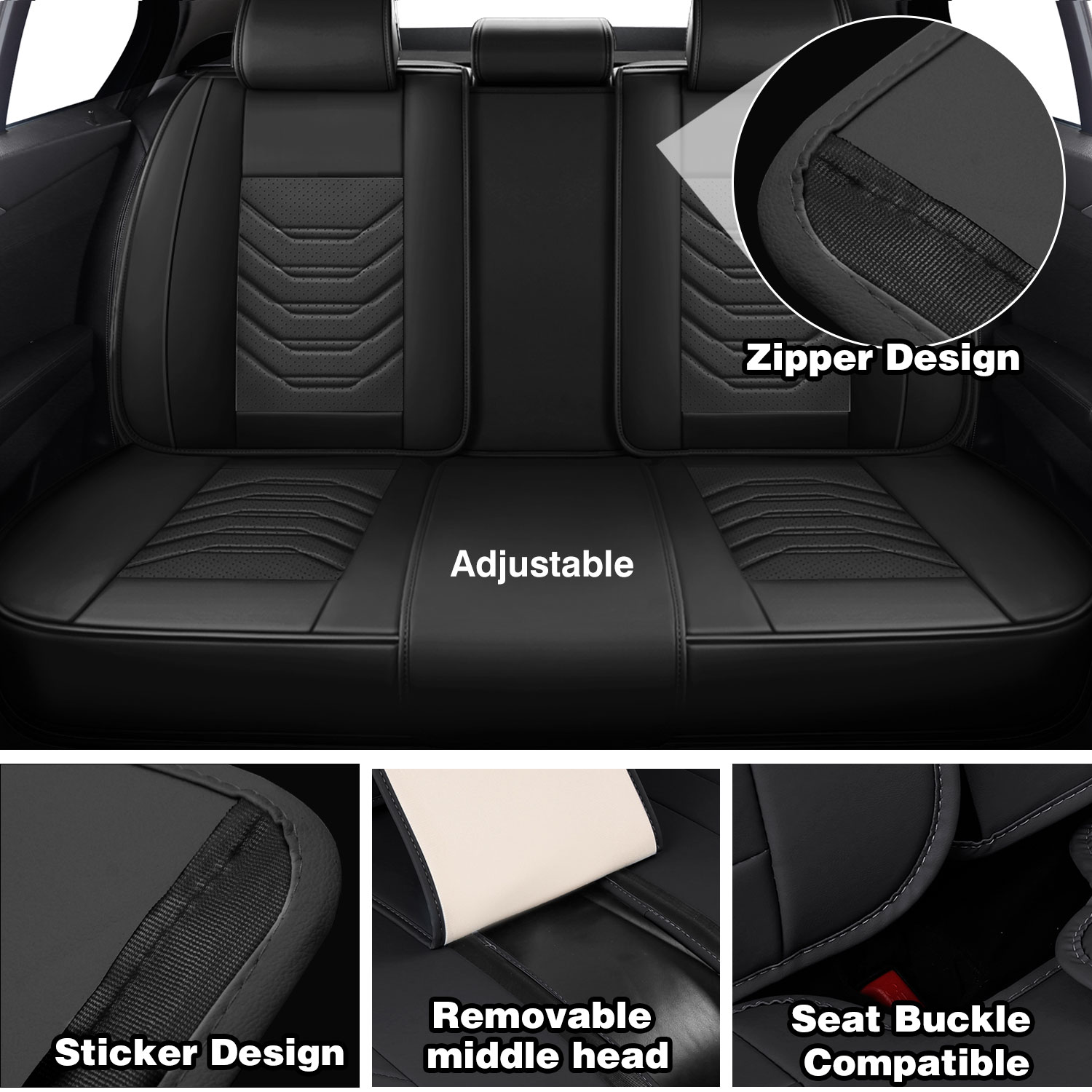 Includes covers for 2 front seats, 1 rear bench (split-friendly), and headrests. The three zippers on the rear backrest ensure compatibility with 60/40 or 40/60 split seats, allowing full use of seat folding and cupholder functions.