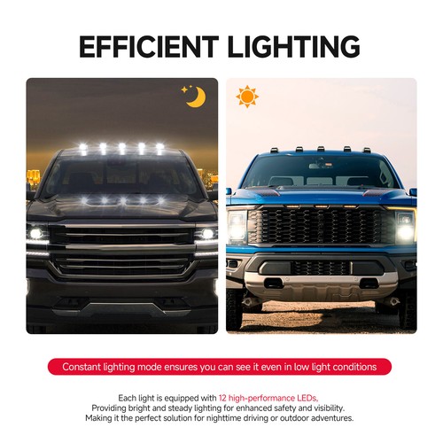 EASY INSTALLATION: Plug and play, no wiring or modification, no damage to the original housing. Simple upgrade only in 15 minutes or less. Truck Cab Lights have Sealed Design With Waterproof Rate IP67.Trouble Free At Extreme Weather.safe on road . Cab Marker Lights, Specially In Snow/Raining/Foggy Days.