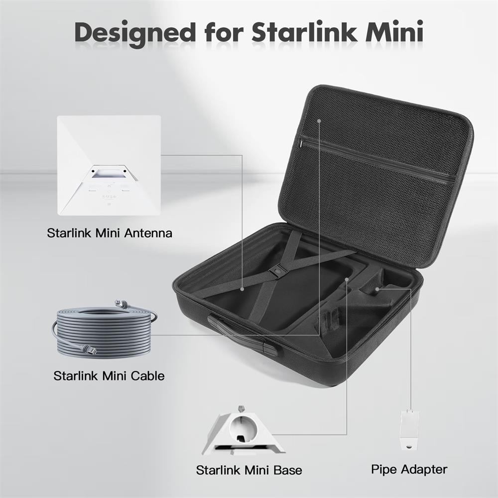 1. Perfect Fit Design: Specifically designed to be compatible with Starlink Mini and its accessories, this waterproof hard case ensures a perfect fit, keeping your devices organized and secure during transportation and storage. Its precise design provides optimal protection for all components, including power cables, stands, and adapters.