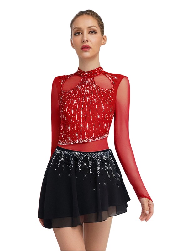 The long-sleeve design is a trendy element, adding elegance and warmth, making it suitable for various dance styles and performances.