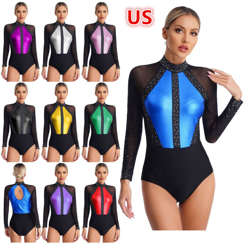 Sheer mesh and velvet patchwork with shiny rhinestones decoration bring a luxurious and glamorous feel, making you stand out on the dance floor.