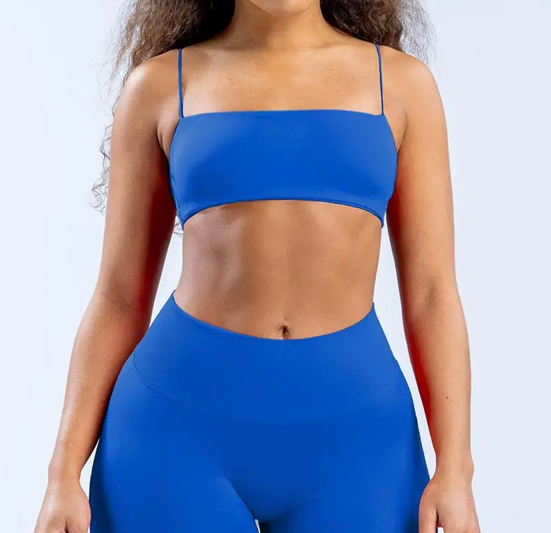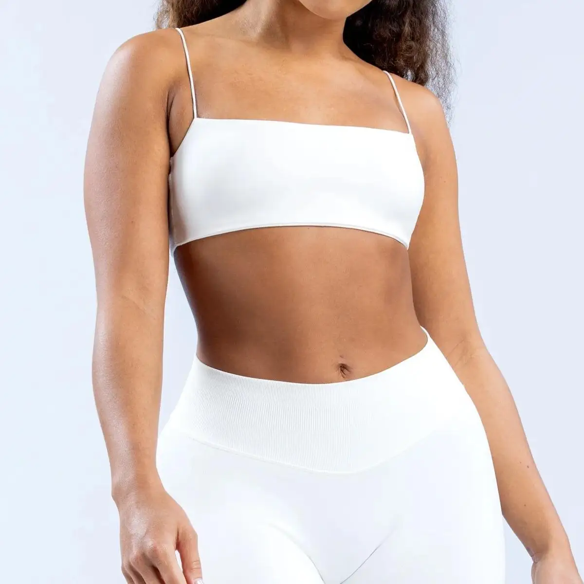 XS-XL Seamless Strappy Back Padded Sports Bra Crop Top Gym Yoga Workout Wear NEW